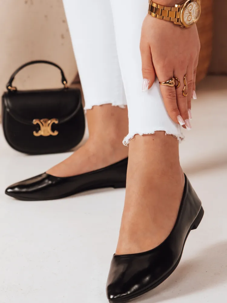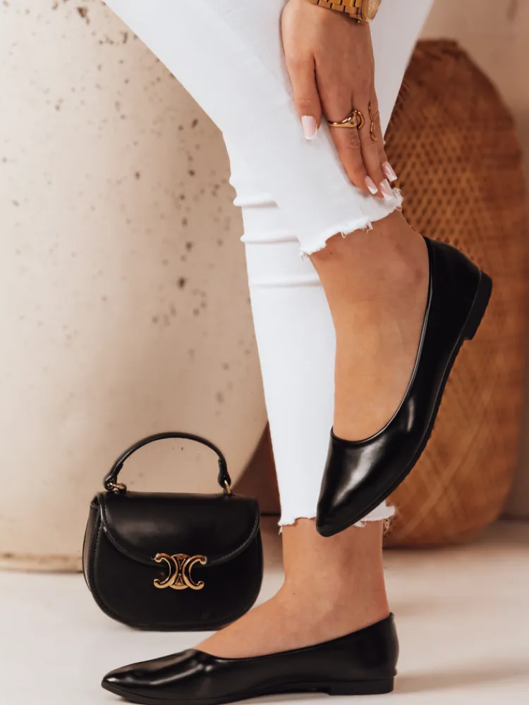 Balerinki damskie na płaskim obcasie. Model wykonany z skóry ekologicznej. Nosek w kształcie szpicu. Doskonałe do biura, na spotkanie czy wieczorny spacer – ich wszechstronność to klucz do idealnego obuwia.