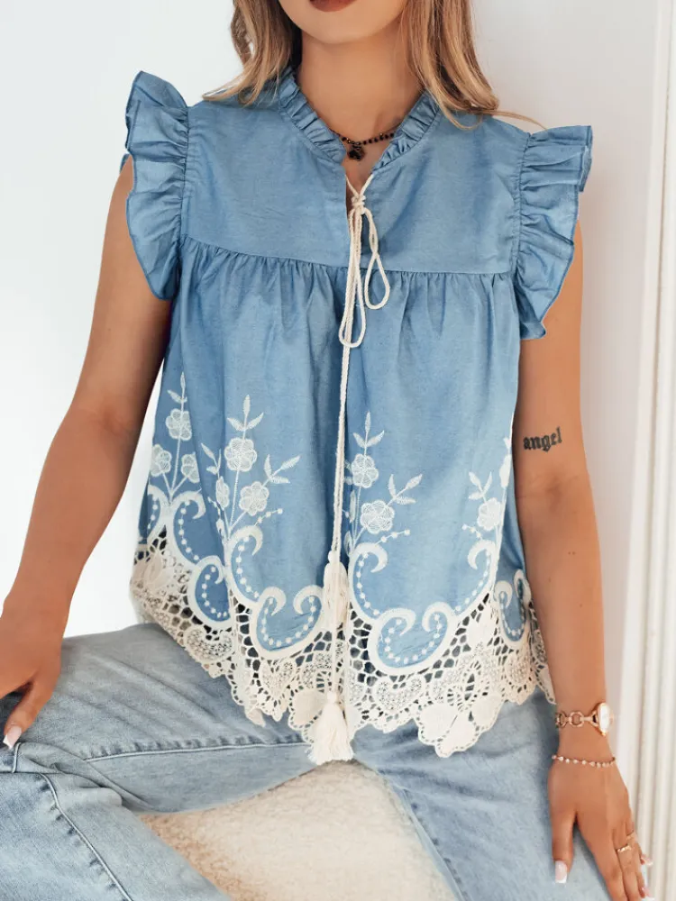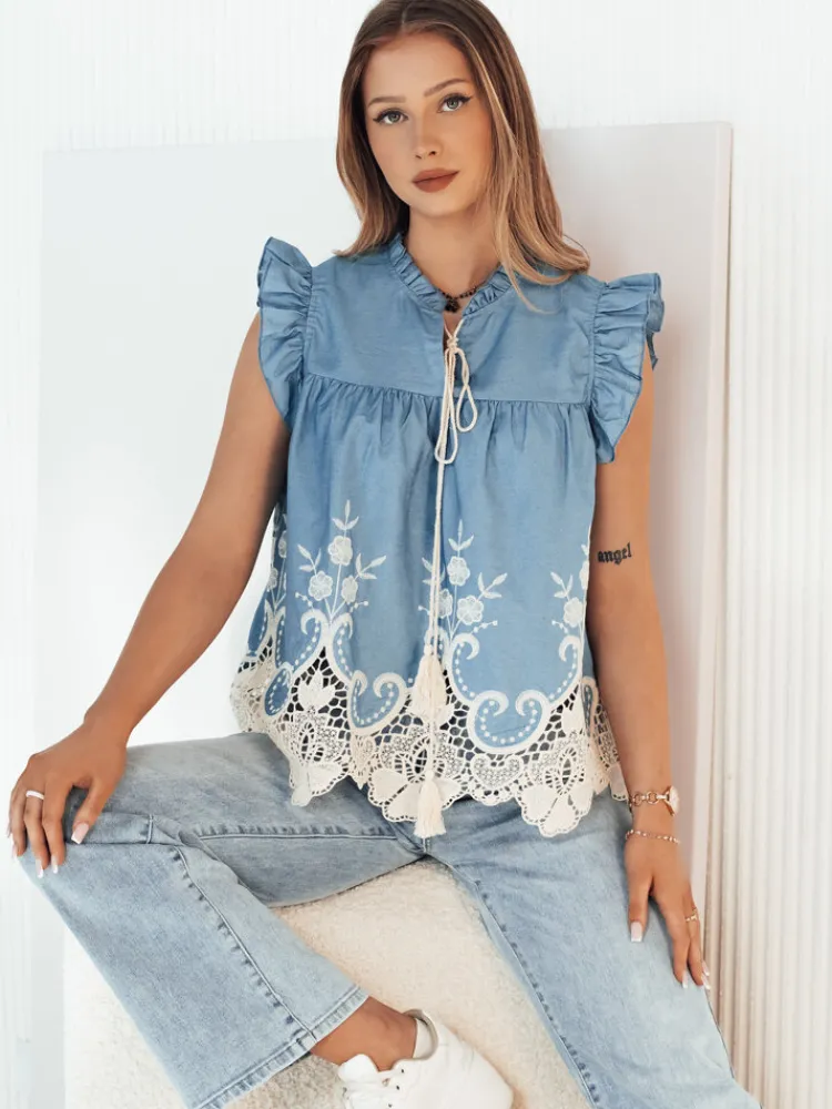 Bluzka FATRELA to wyrafinowany wybór dla kobiety ceniącej sobie detale. Nietypowy krój w połączeniu z bufiastymi rękawkami dodaje uroku i oryginalności, a zakończenie koronką podkreśla subtelność stylizacji. Wzór w kwiaty dodaje romantycznego charakteru, a wiązanie sznurkiem pozwala na regulację dekoltu. Idealna dla pań poszukujących bluzki z charakterem, która wyróżni się w tłumie.