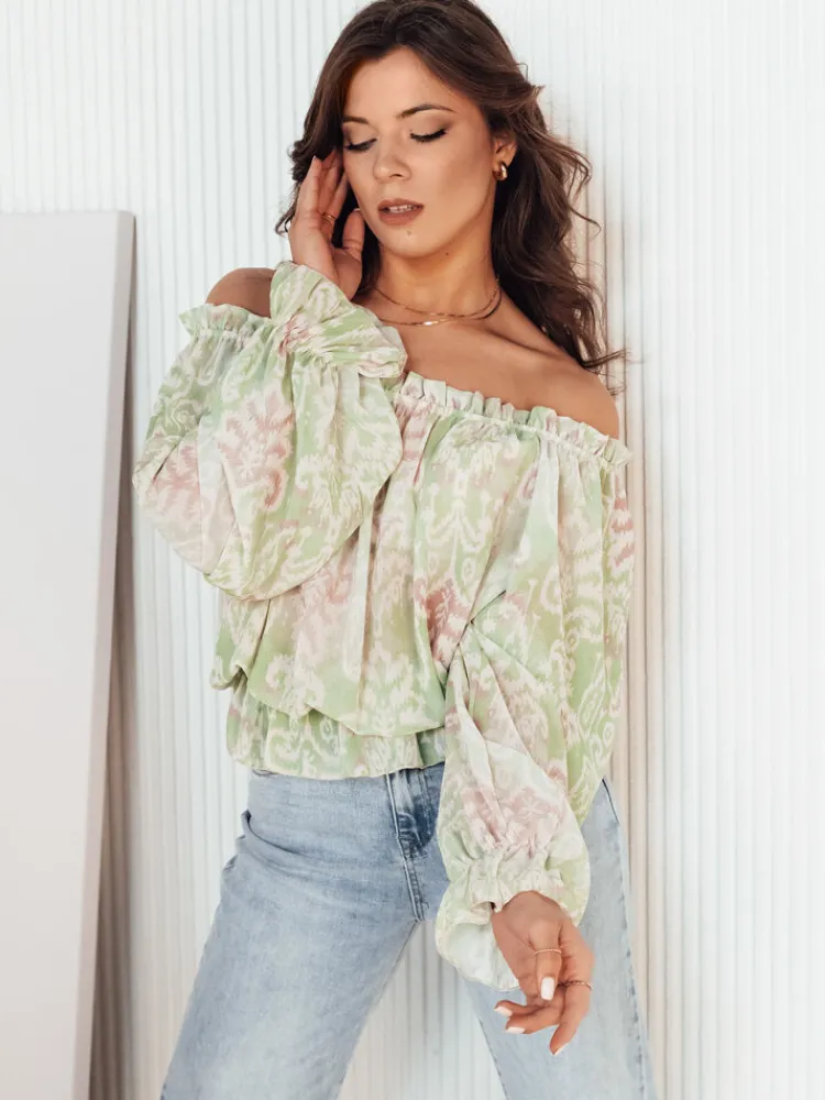 Ta bluzka hiszpanka to kwintesencja letniej elegancji. Jej luźny krój i przewiewny materiał zapewnią wygodę w ciepłe dni, a odkryte ramiona subtelnie podkreślą Twoją kobiecość, idealnie komponując się z unikalnym wzorem.