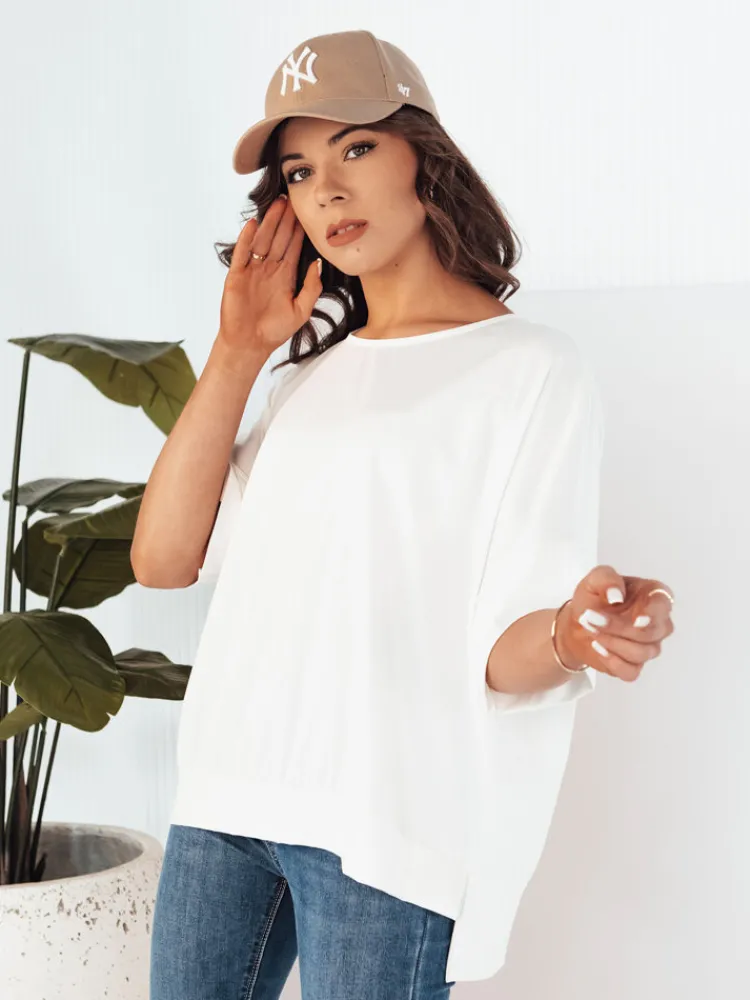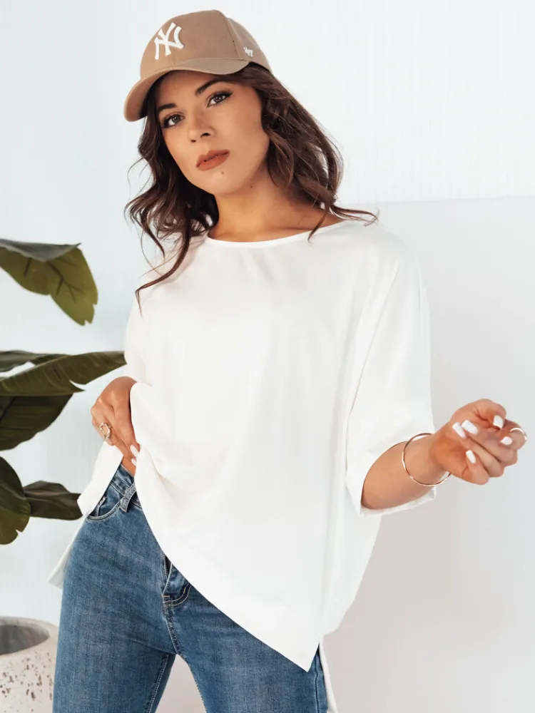 Wyraź siebie z bluzką JOILL – połączeniem klasyki i nowoczesności! Elegancki, okrągły dekolt i krótkie rękawy to kwintesencja komfortu, a lekko wydłużony tył dodaje subtelnego stylu. Idealna do wielu zestawów!