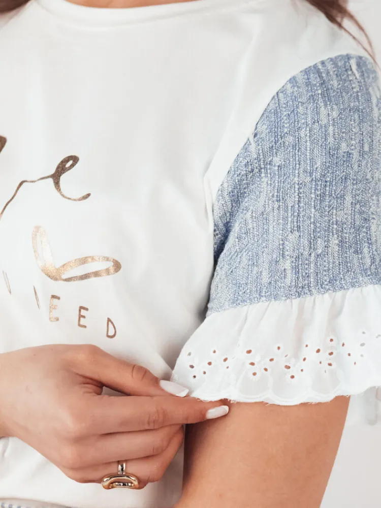 Bluzka LAYN z unikatowym nadrukiem jest wyjątkową propozycją, która doda charakteru każdej stylizacji. Kontrastowe rękawy w połączeniu z delikatną falbanką na ich zakończeniach tworzą efektowny duet, który przyciąga wzrok i podkreśla indywidualny styl. Ta bluzka to połączenie komfortu i oryginalnego designu, idealne dla każdej kobiety ceniącej unikalne detale.