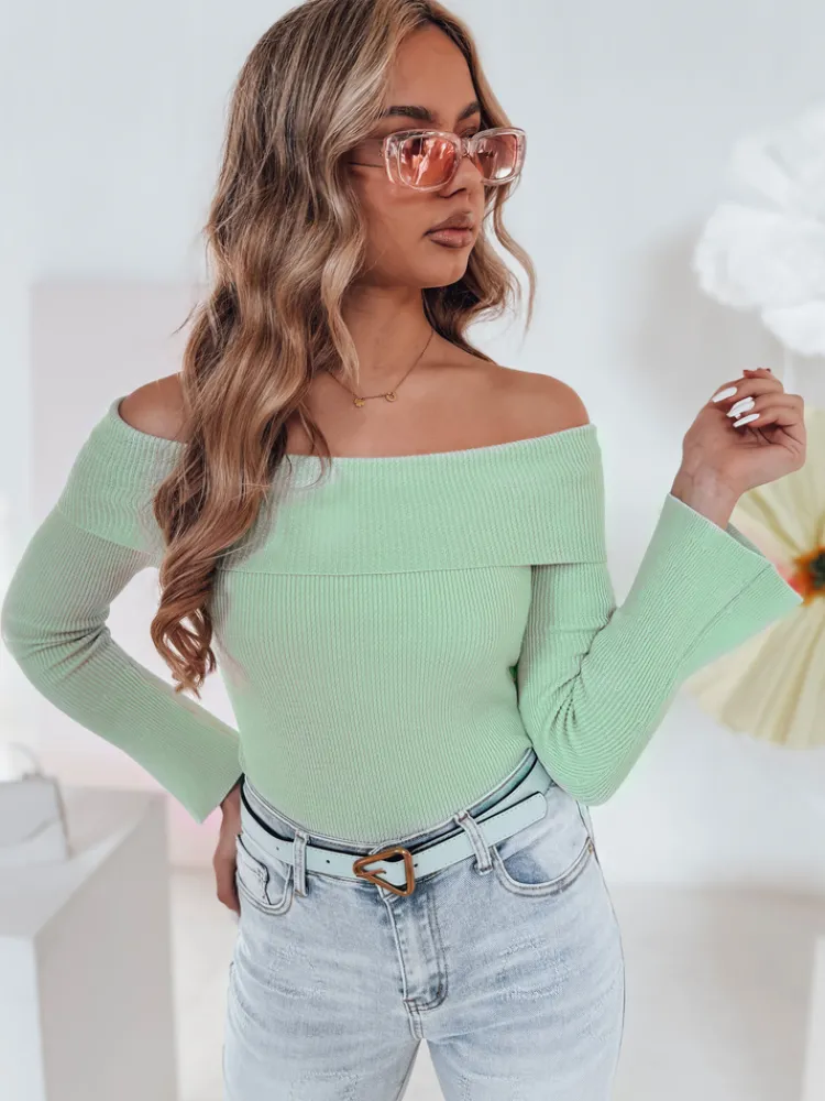 Bluzka z dekoltem off-shoulder, który pięknie eksponuje ramiona. Dopasowany krój podkreśla sylwetkę, a szerokie rękawy dodają elegancji. Przyjemny w dotyku materiał sprawia, że noszenie go to czysta przyjemność. Doskonale sprawdzi się w połączeniu z jeansami lub ołówkową spódnicą.