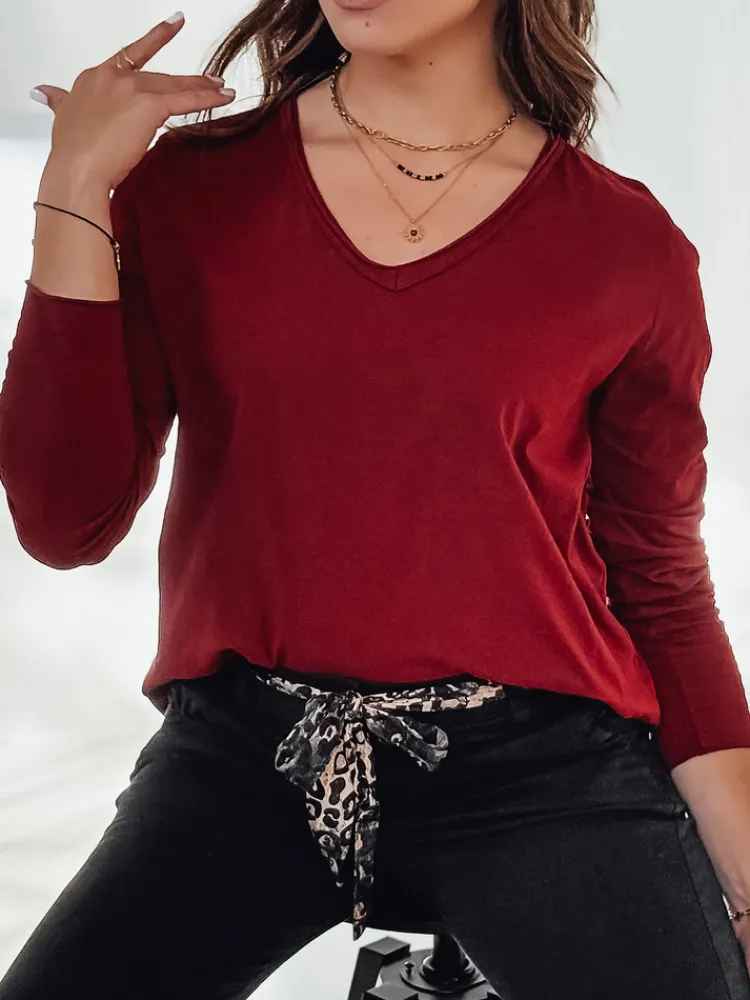 Bluzka damska oversize gładka w serek VAVLSTYLES
