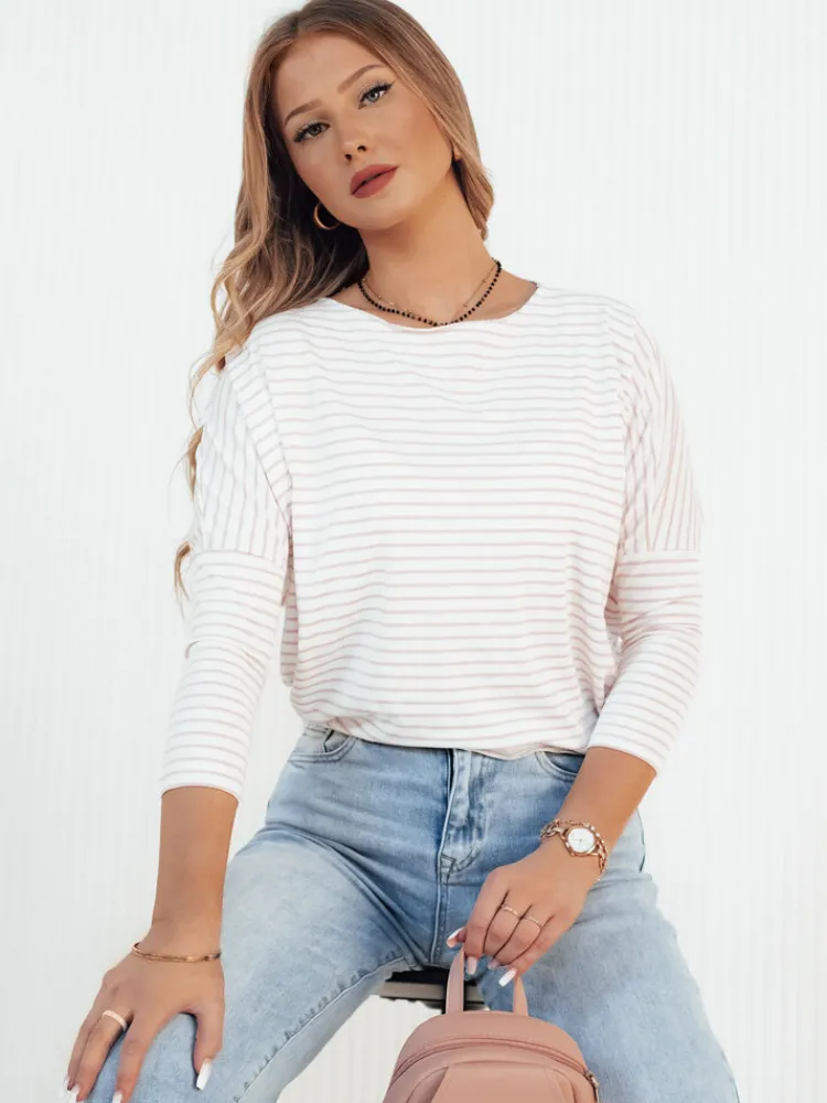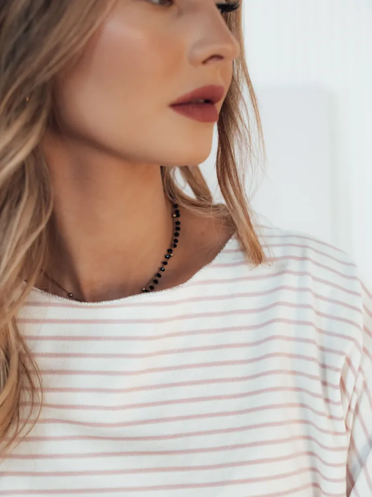 Ta stylowa bluzka w paski to must-have w szafie każdej modnej kobiety. Pasuje do różnorodnych stylizacji, od luźnych po bardziej formalne, dzięki czemu łatwo dopasujesz ją do swojego osobistego stylu. Komfortowa i modna – sprawdzi się w każdej sytuacji.