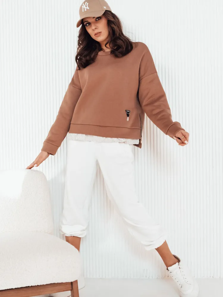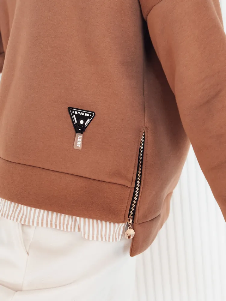 Przytulna i modna bluza wykonana z myślą o wygodzie i stylu. Bluza posiada charakterystyczne detale takie jak modna naszywka, kontrastujące paski na talii oraz zamek błyskawiczny po boku. Jest idealna na każdą okazję, od casualowego wyjścia po wieczorny relaks.