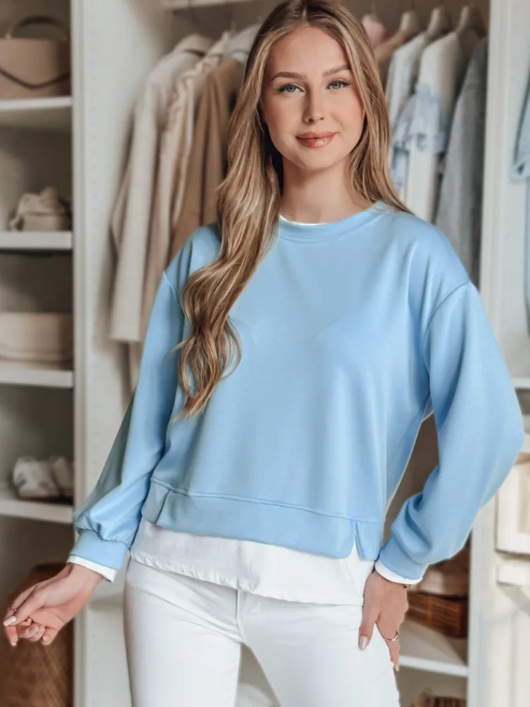 Lekka, oversize’owa bluza damska o luźnym kroju, który zapewnia wygodę i swobodę ruchów. Modne rozcięcia na górnej warstwie dodają jej charakteru, a ściągacze przy rękawach podkreślają casualowy styl. Uniwersalny rozmiar pasuje od XS do L. Idealna na co dzień, świetnie komponuje się z jeansami i sneakersami, tworząc modny, niezobowiązujący look.