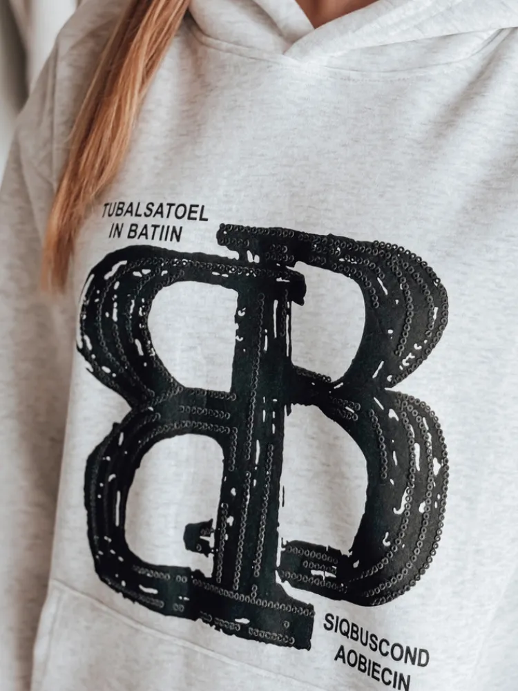 Bluza damska oversize o luźnym kroju, idealna na co dzień. Model z kapturem i ozdobną kieszenią typu kangur, który łączy wygodę z modnym stylem. Ozdobiona wyrazistym nadrukiem z napisami, nadającym jej charakteru. Uniwersalny rozmiar pasuje od XS do L. Ściągacze przy rękawach i na dole dbają o komfort noszenia. Uniwersalny fason sprawdzi się w casualowych stylizacjach, tworząc doskonałą bazę do różnych outfitów.