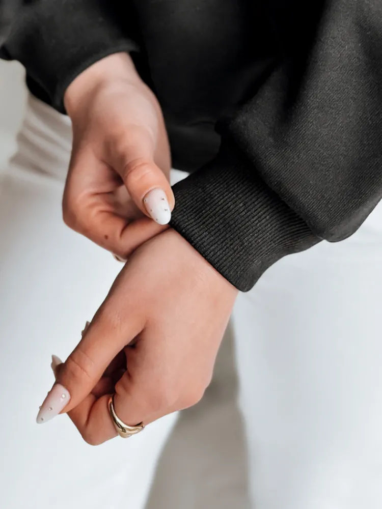 Bluza damska o oversize’owym kroju, który łączy modny look z wygodą. Miękka oraz przyjemna w dotyku tkanina premium otula ciało, zapewniając komfort nawet podczas długich dni. Uniwersalny rozmiar pasuje od XS do L. Model posiada ściągacze przy rękawach i na dole, dzięki czemu dopasowuje się do sylwetki, nie tracąc przy tym luźnego fasonu. Duży nadruk z sercem nadaje jej niepowtarzalnego stylu, sprawiając, że bluza świetnie wpisuje się w trendy. Można ją zestawić zarówno z jeansami, jak i legginsami czy szortami.