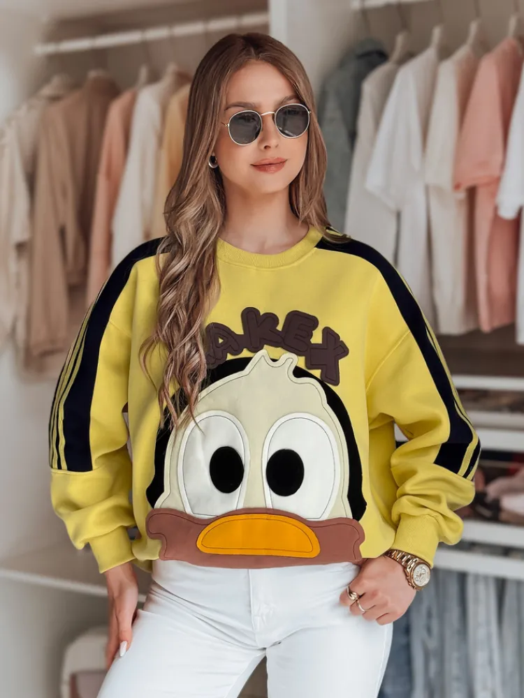 Bluza damska oversize z okrągłym dekoltem oraz wyrazistym wzorem z naszywką w kształcie kaczki to idealny wybór na wiosenne dni. Wygodny fason z elastycznymi ściągaczami przy rękawach i dole zapewnia komfort noszenia, a ozdobne pasy na rękawach dodają sportowego charakteru. Uniwersalny rozmiar pasuje od XS do L. Sprawdzi się zarówno na co dzień, jak i w casualowych stylizacjach.