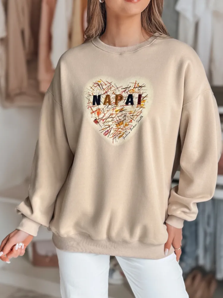 Bluza damska oversize z nadrukiem w kształcie serca i haftowanym napisem to połączenie modnego designu z wygodą. Wzór z wsuwkami w sercu tworzy ciekawy efekt graficzny, który wyróżnia się na tle codziennych stylizacji. Ściągacze przy rękawach i na dole dodają stylu i dbają o dobre dopasowanie.Uniwersalny rozmiar pasuje od XS do L. Bluza idealnie sprawdzi się na sezon wiosenny do casualowych stylizacji.