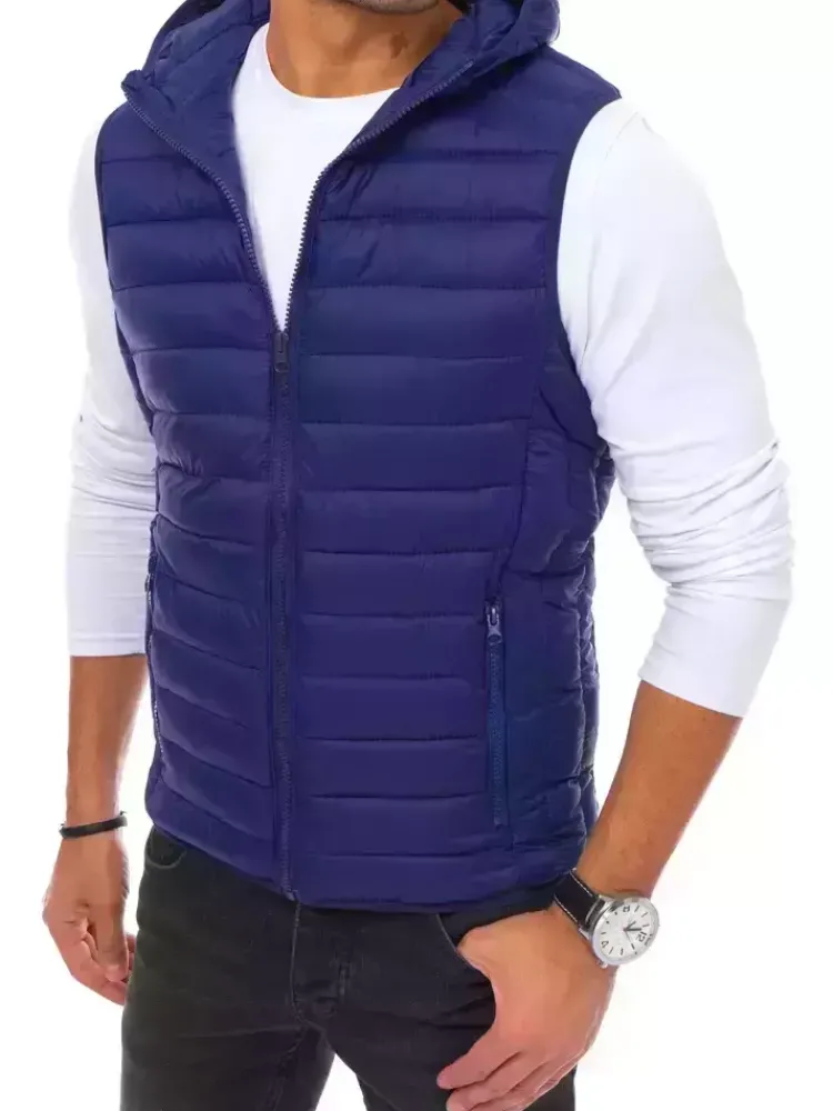 Pikowana kamizelka męska z kapturem.Zapinana na zamek błyskawiczny.Kaptur nieodpinany.Dwie zapinane kieszenie zewnętr…