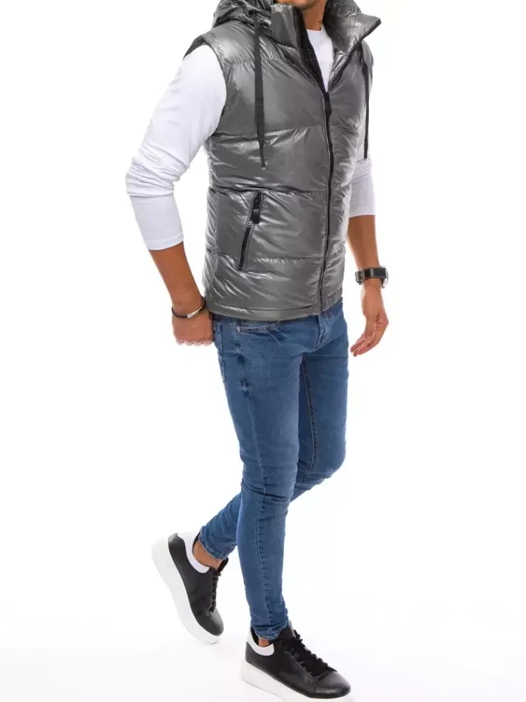 Kamizelki Męskie|Kurtki Męskie>Dstreet Kamizelka męska srebrna TX3918