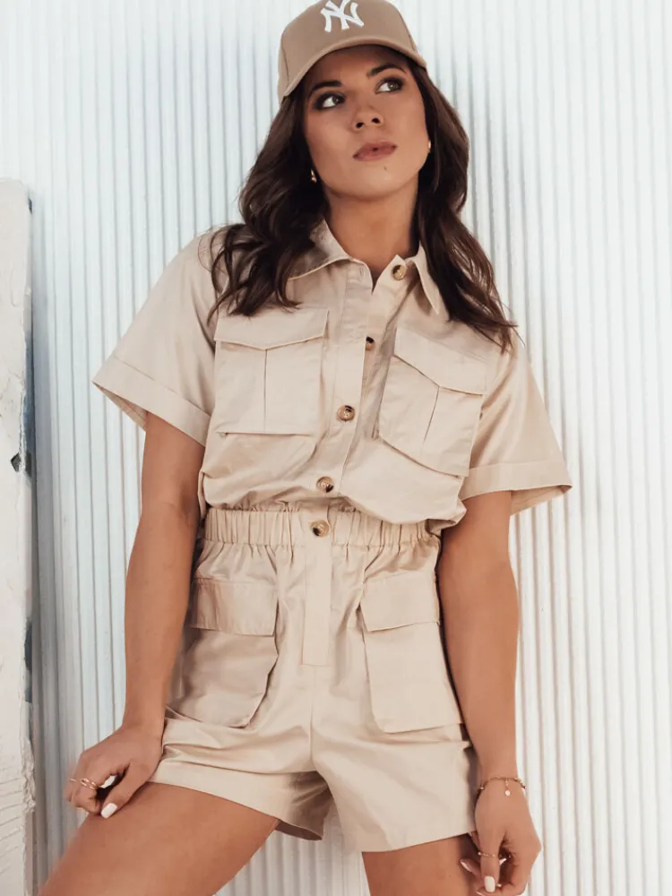 Odkryj wszechstronność kombinezonu BROST, który łączy w sobie casualową elegancję z funkcjonalnością. Praktyczne liczne kieszenie, zapinanie na solidne guziki i klasyczny kołnierz czynią go idealnym wyborem na każdą okazję. Krótkie nogawki i rękawy dodają lekkości, a gumka w pasie gwarantuje idealne dopasowanie.