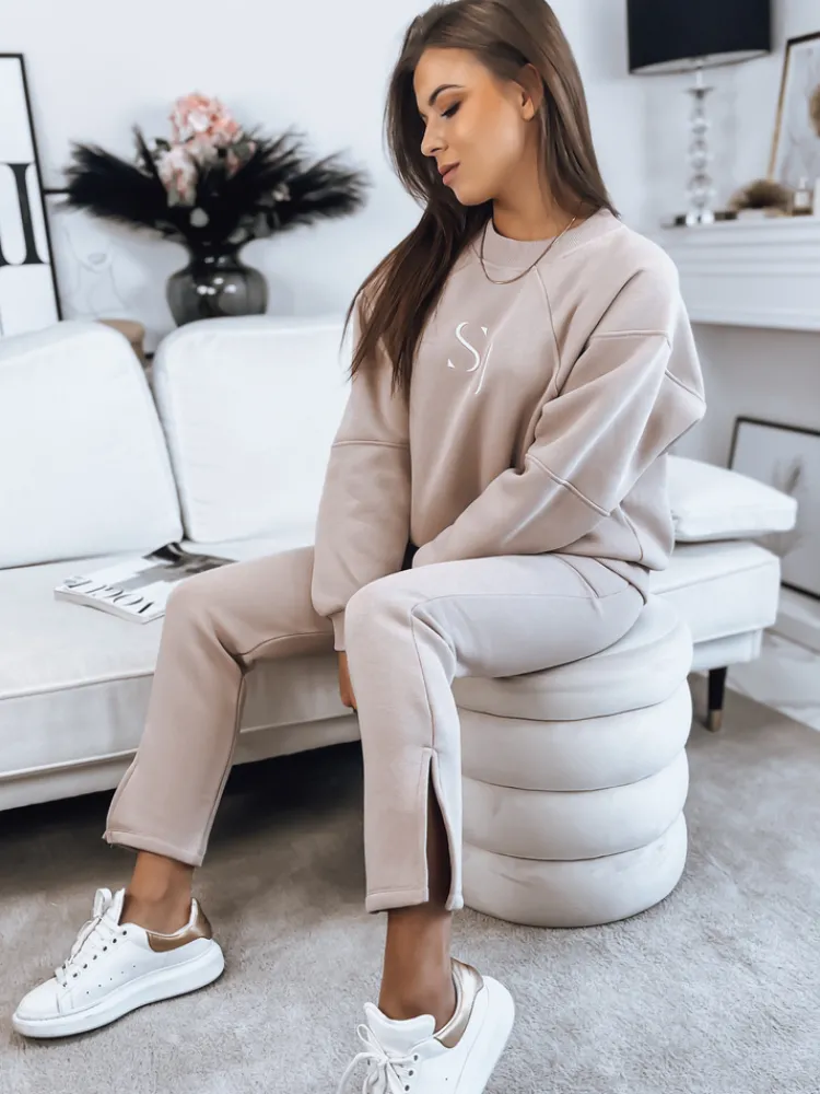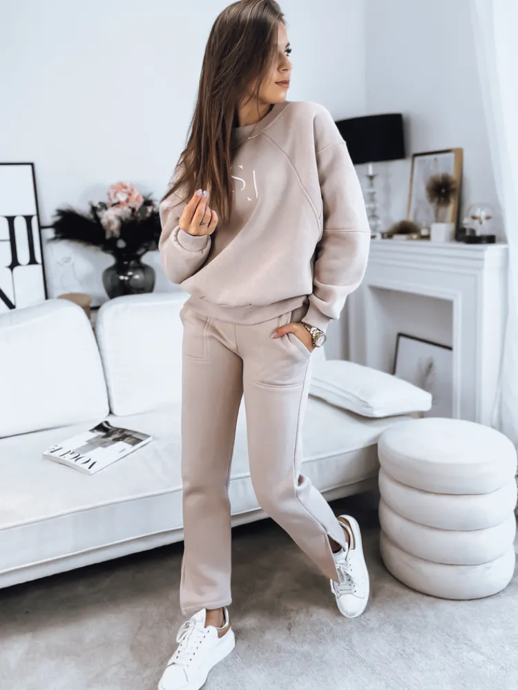 Ocieplany, basicowy komplet dresowy to must-have w każdej szafie. Uniwersalny i ponadczasowy zestaw sprawdzi się w sportowych i codziennych stylizacjach. Bluza posiada tłoczony napis. Spodnie posiadają, wiązanie wraz ze ściągaczem w pasie. Na dole posiadają rozcięcia. Świetny set na jogging, siłownie, czy też spacer.