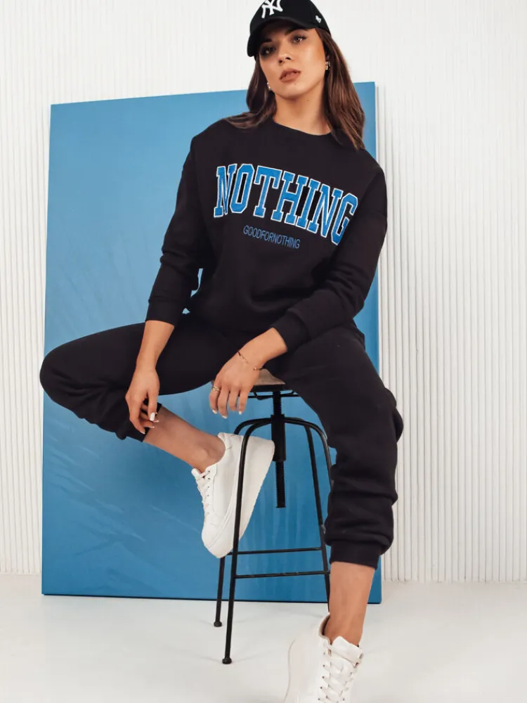 Ocieplany komplet dresowy to idealna propozycja na chłodniejsze dni. Bluza posiada ściągacze na dole oraz przy rękawach. Niezwykle miły w dotyku materiał sprawi, że nie będziesz chciała go zdjąć. Szerokość spodni w pasie można regulować dzięki sznureczkowi.