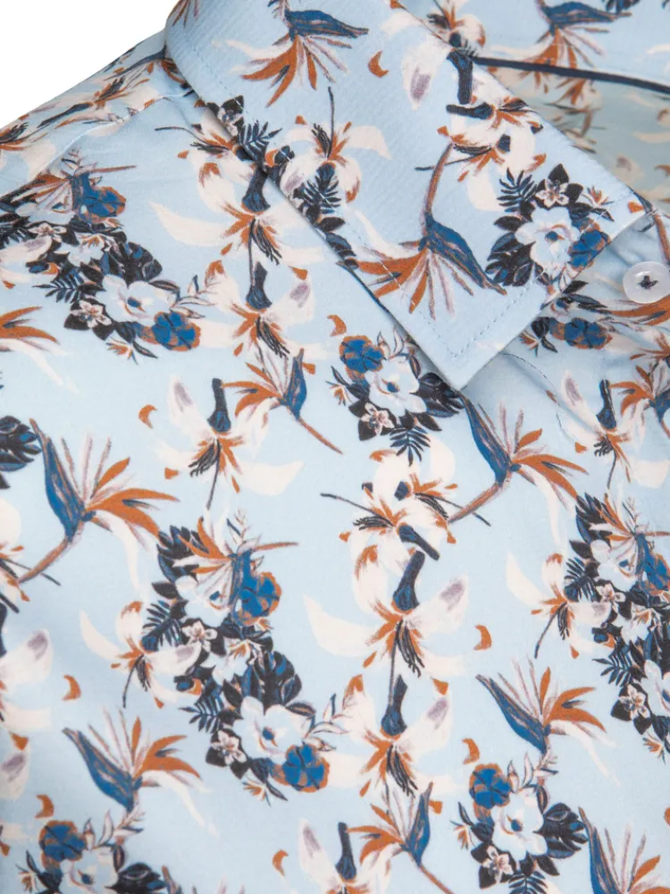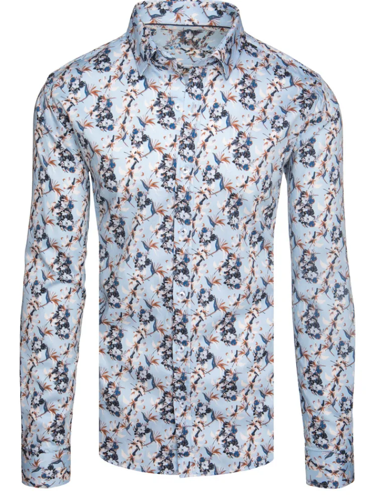 Męska koszula slim fit z długim rękawem i roślinnym wzorem to stylowa propozycja dla fanów oryginalnych stylizacji. Kwiatowy print przyciąga uwagę, a dopasowany krój podkreśla sylwetkę. Idealna na wiosenne dni – świetnie komponuje się zarówno z jeansami, jak i chinosami.