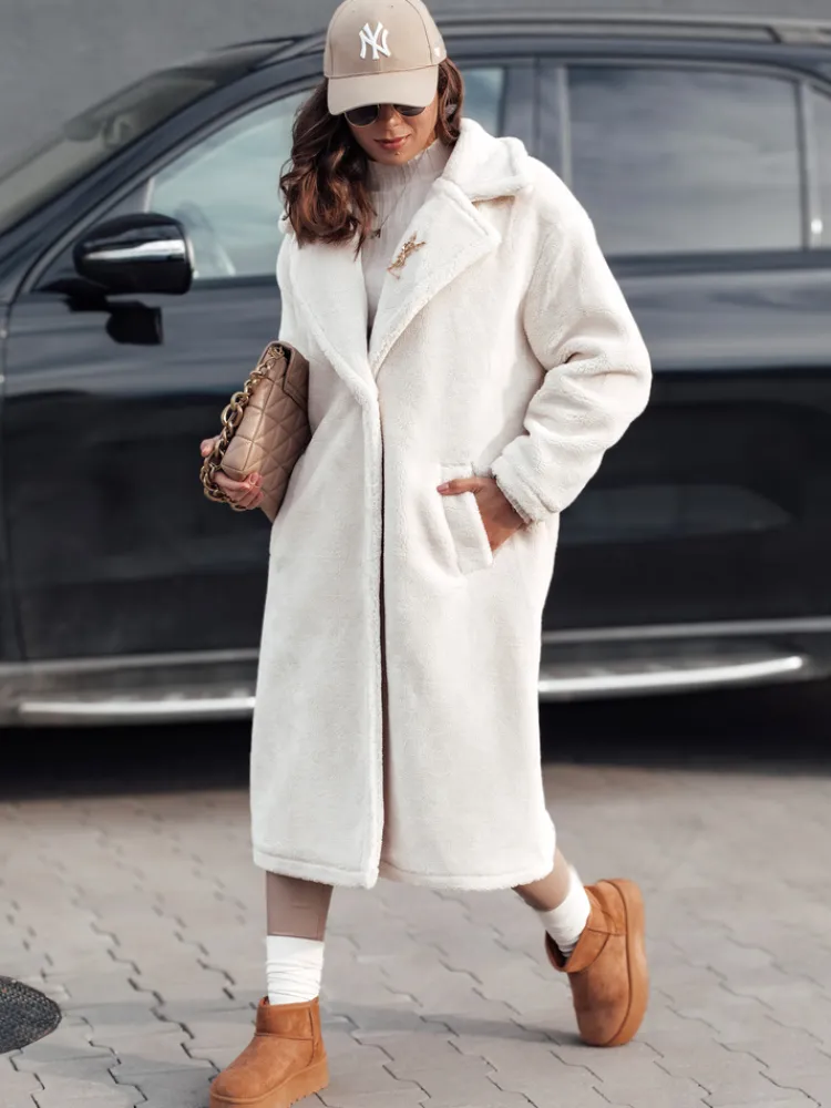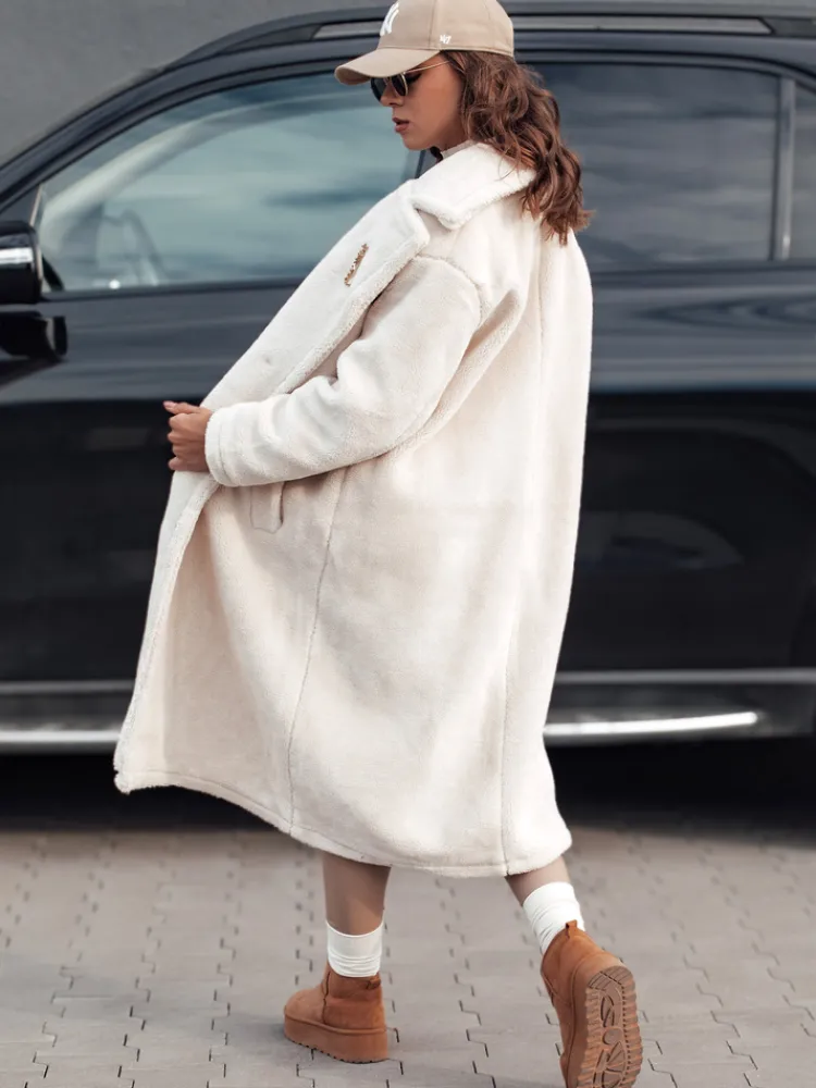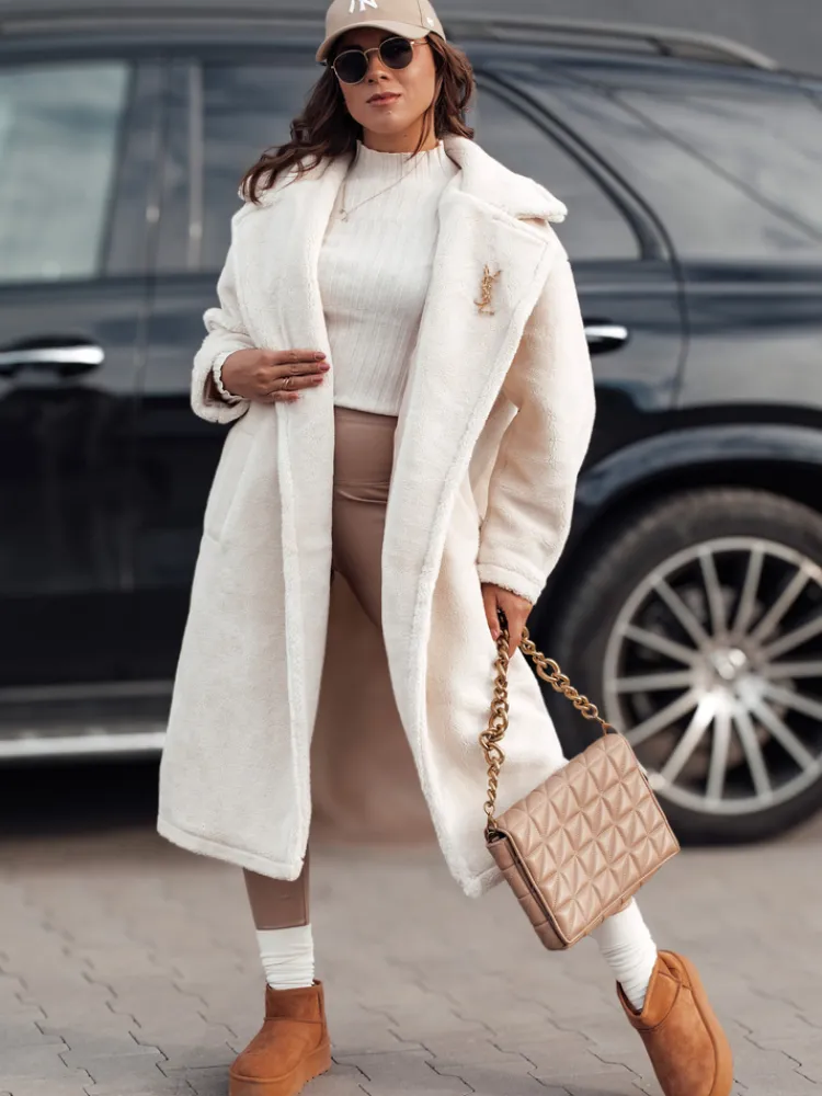 Klasyczny, a jednocześnie niezwykle stylowy płaszcz, który przyciąga uwagę swoją miękkością i elegancją. Idealny na chłodniejsze dni, doskonale sprawdzi się zarówno podczas miejskich spacerów, jak i bardziej eleganckich okazji. Wykonany z materiałów, które zapewniają ciepło i komfort, tworzy świetne połączenie funkcjonalności z modą. Długość płaszcza pozwala na swobodę ruchów, a jego prosty krój pasuje do różnych stylizacji.