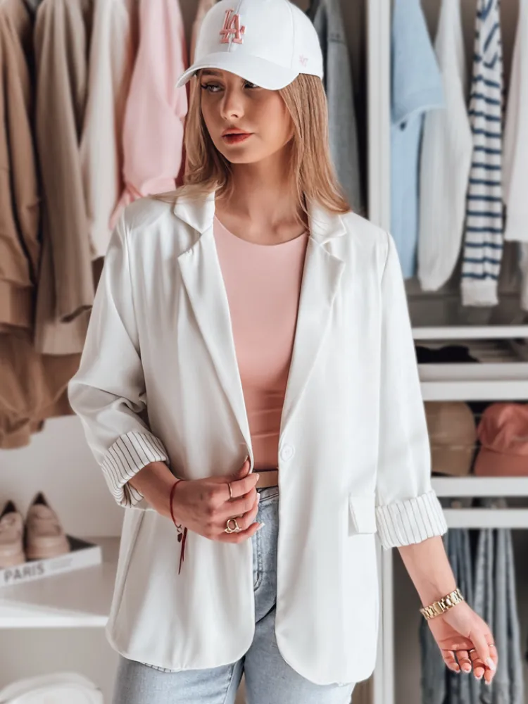 Elegancka marynarka damska o oversize’owym kroju to idealny wybór dla kobiet ceniących modny i wygodny look. Zapinana na guzik, z podszewką, świetnie dopasowuje się do sylwetki. Długość podkreśla stylowy charakter, a luźniejszy fason zapewnia komfort noszenia. Doskonale komponuje się z jeansami i klasycznymi spodniami.