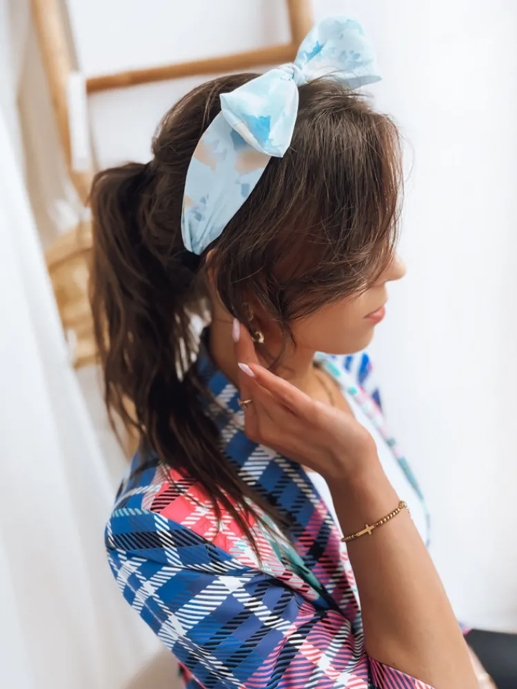 Opaska na głowę z ozdobną kokardą to doskonały dodatek do codziennych, jak i eleganckich stylizacji. Opaska świetnie utrzyma Twoje włosy i pokreśli fryzurę w oryginalny sposób.