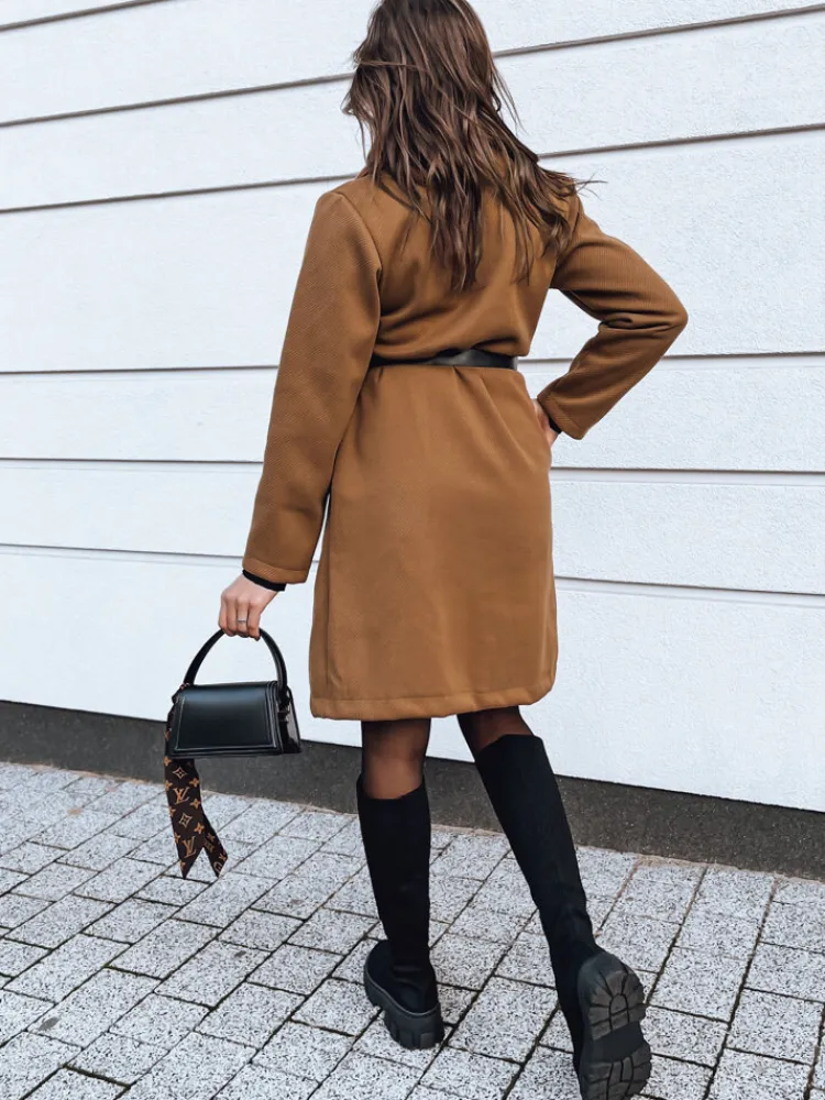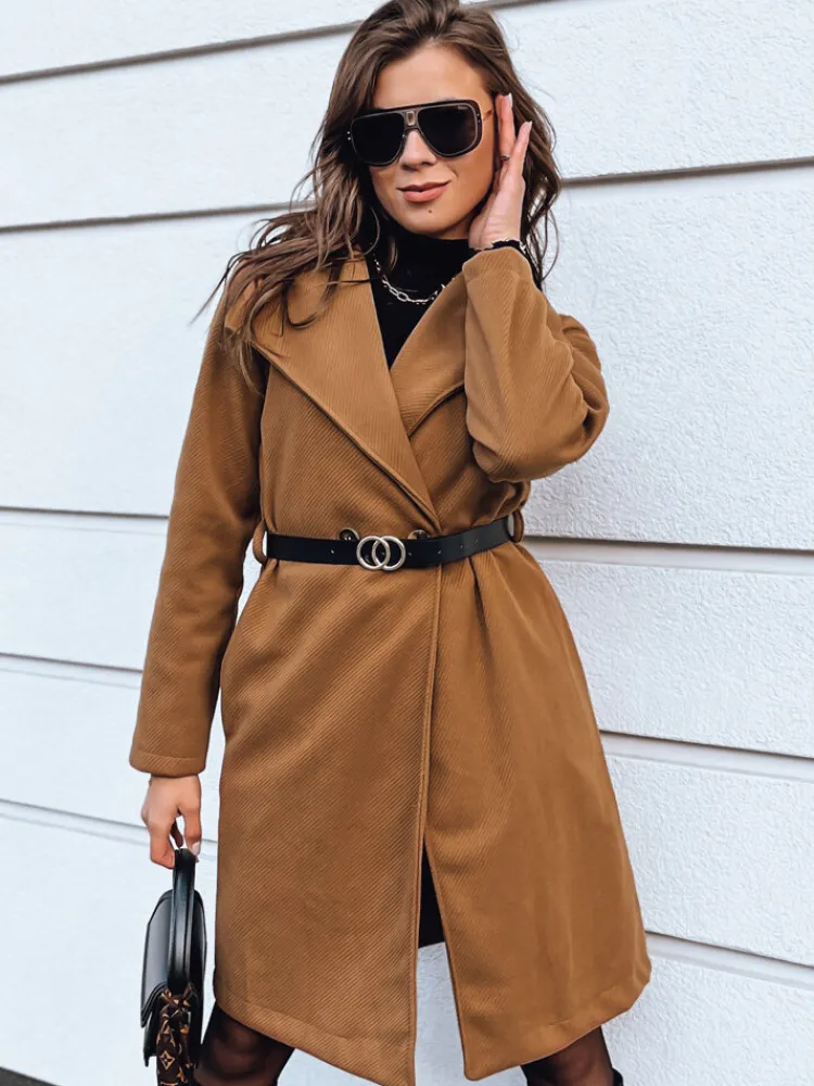 Klasyczny płaszczyk to niezbędnik w szafie każdej stylowej kobiety. Posiada dwie kieszenie, efektownie wyglądający duży kołnierz oraz zapinanie na guzik. Dodatkowo płaszcz urozmaica pasek, którym można podkreślić talię. Bezbłędnie dopełni wiele stylizacji. Dostępny w kilku wersjach kolorystycznych.