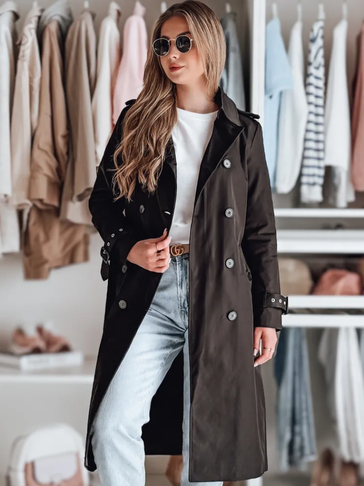 Długi, klasyczny trencz to twój must have! Pasek w zestawie idealnie dopasuje płaszcz do twojej sylwetki i podkreśli twoją talię. Regulowane mankiety na klamrę dodają stylowego akcentu, a szerokie klapy podkreślają elegancki charakter. Idealny na wiosnę i jesień!