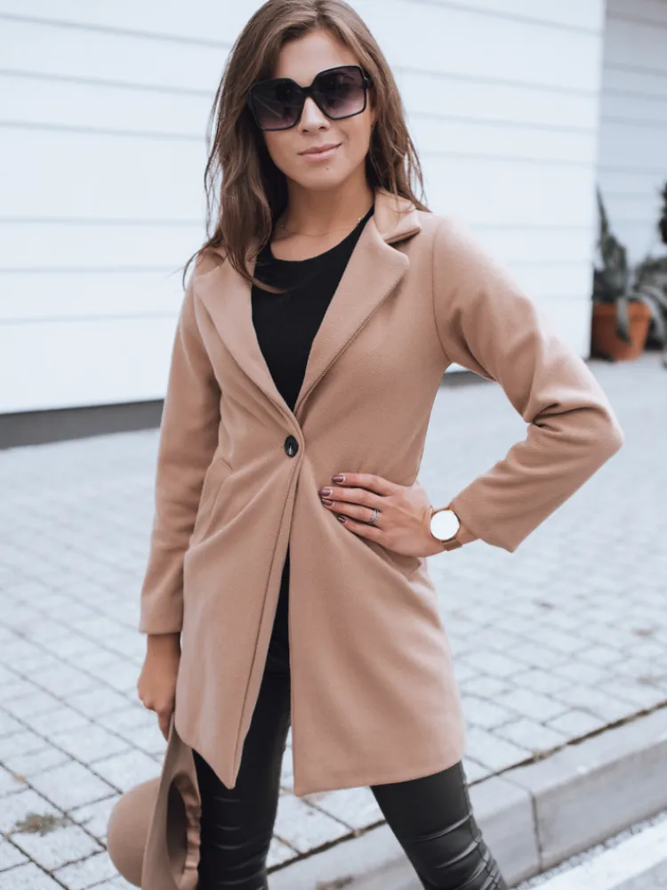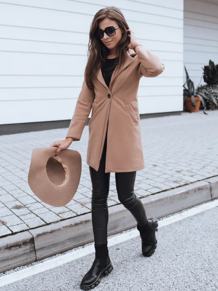 Klasyczny płaszcz LUGI zapinany na guzik. Model posiada kołnierzyk. Z przodu znajdują się dwie kieszenie. Świetnie pasuje do codziennych i wieczorowych stylizacji. Totalny klasyk na nadchodzący sezon!
