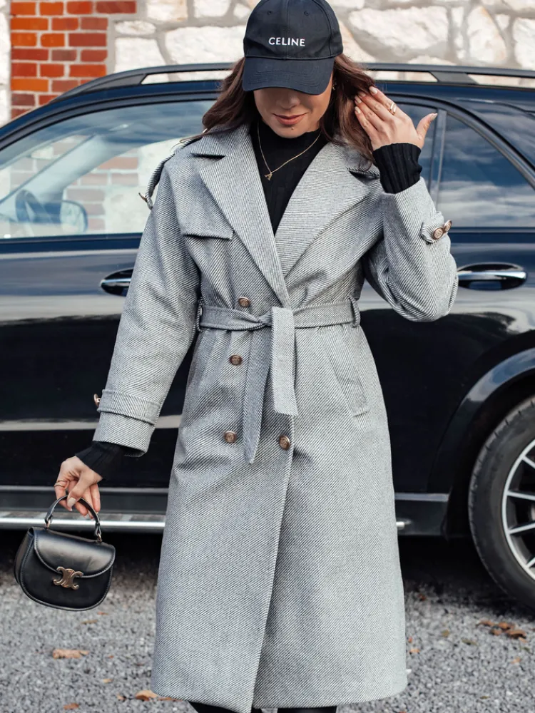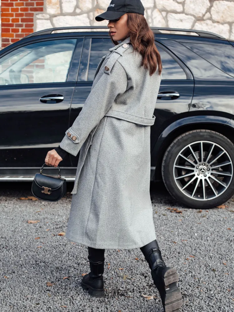 Płaszcz damski długi wiązany w pasie GALLERIA