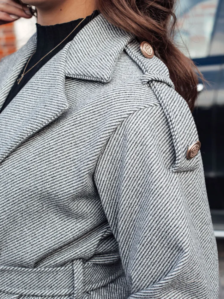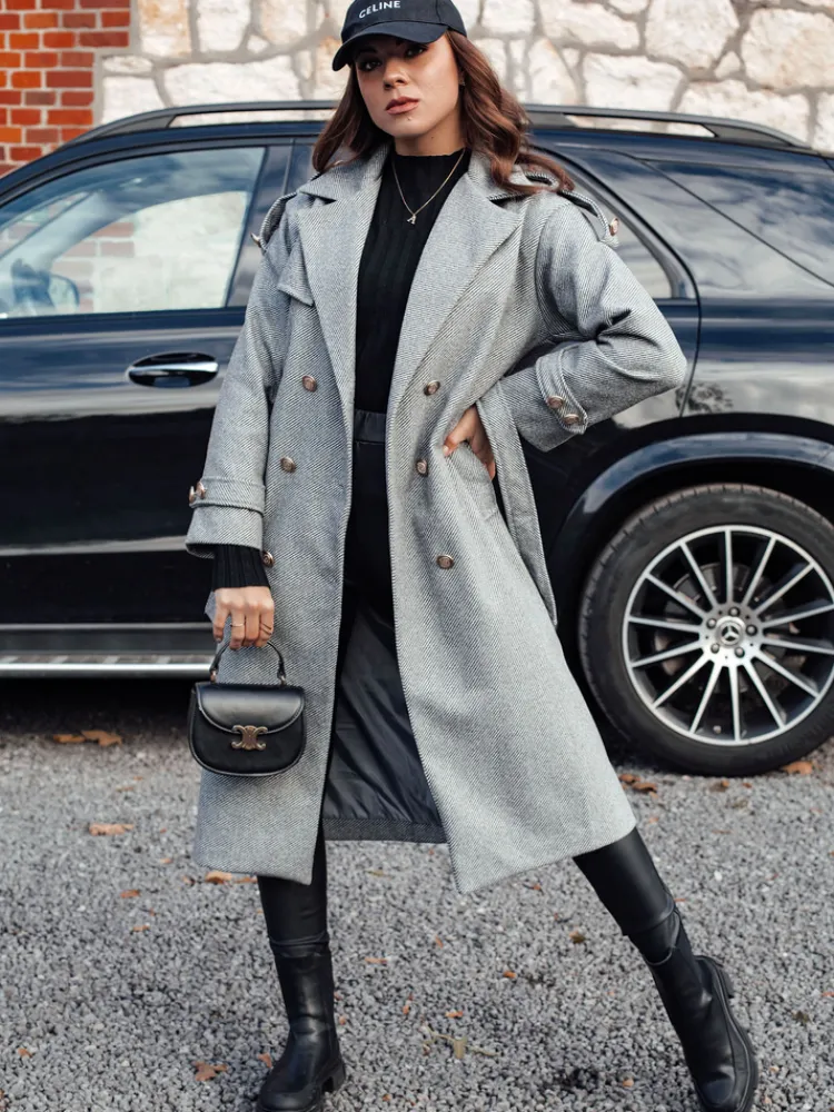 Elegancki płaszcz damski, który łączy klasykę z nowoczesnym stylem. Dzięki starannemu wykonaniu i przemyślanemu krojowi, ten model doskonale podkreśla sylwetkę, nadając jej smukłości i szyku. Detale w postaci ozdobnych guzików dodają mu wyjątkowego charakteru. To doskonały wybór na chłodniejsze dni, gdy chcesz połączyć komfort z ponadczasową elegancją.