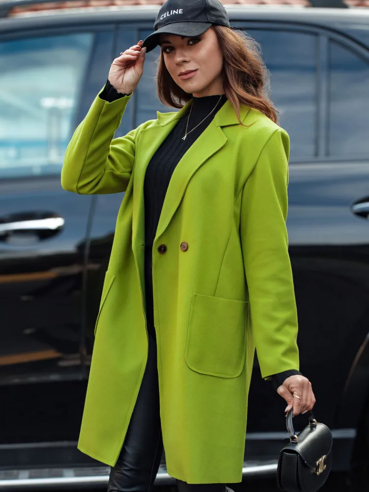 Stylowy płaszcz zaprojektowany z myślą o kobietach ceniących elegancję i ponadczasowy wygląd. Dopracowane detale, takie jak dwurzędowe zapięcie i praktyczne kieszenie, sprawiają, że ten model idealnie pasuje na chłodniejsze dni. Płaszcz doskonale komponuje się z casualowymi stylizacjami, nadając im wyrafinowanego charakteru.