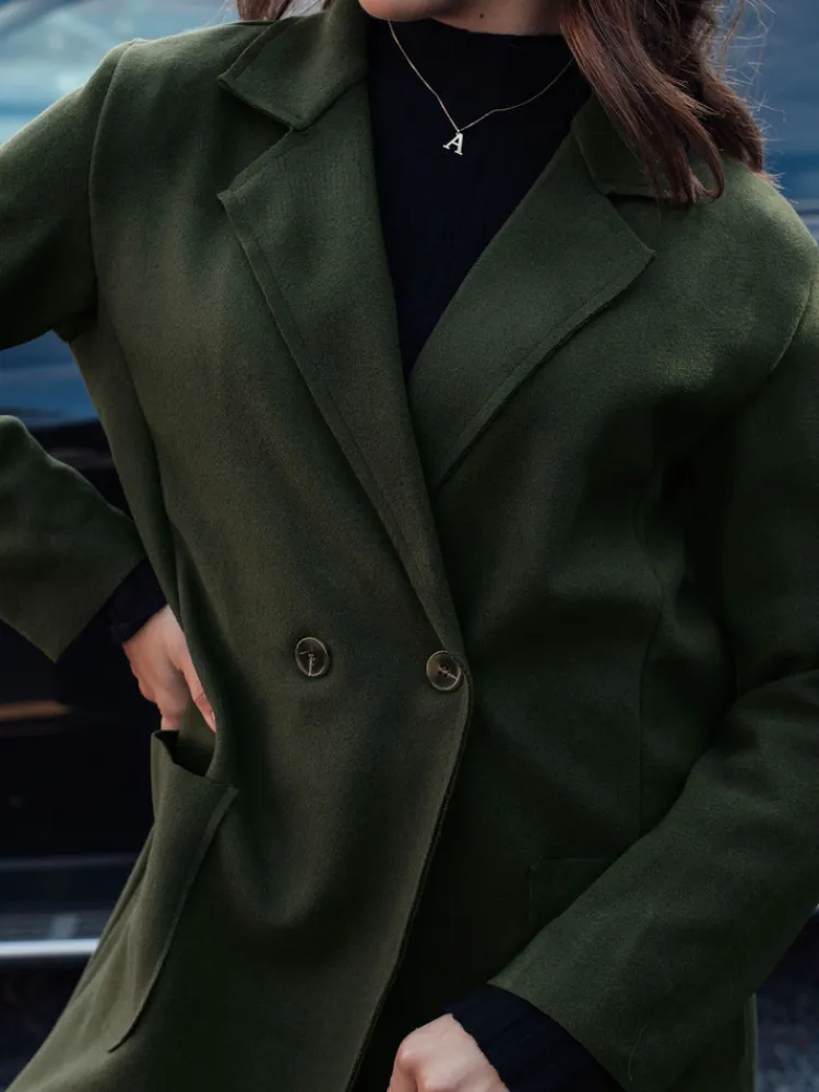 Stylowy płaszcz zaprojektowany z myślą o kobietach ceniących elegancję i ponadczasowy wygląd. Dopracowane detale, takie jak dwurzędowe zapięcie i praktyczne kieszenie, sprawiają, że ten model idealnie pasuje na chłodniejsze dni. Płaszcz doskonale komponuje się z casualowymi stylizacjami, nadając im wyrafinowanego charakteru.