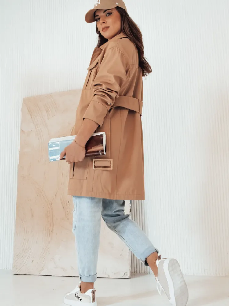 Bardzo stylowy płaszcz o prostym kroju. Zapinany na guziki. Model posiada pasek, który pięknie podkreśla talię. Świetnie się układa i prezentuje. Pasuje do codziennych i eleganckich stylizacji.