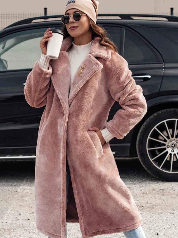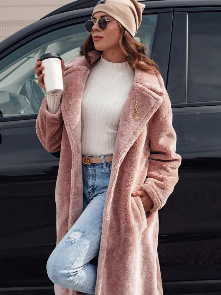 Klasyczny, a jednocześnie niezwykle stylowy płaszcz, który przyciąga uwagę swoją miękkością i elegancją. Idealny na chłodniejsze dni, doskonale sprawdzi się zarówno podczas miejskich spacerów, jak i bardziej eleganckich okazji. Wykonany z materiałów, które zapewniają ciepło i komfort, tworzy świetne połączenie funkcjonalności z modą. Długość płaszcza pozwala na swobodę ruchów, a jego prosty krój pasuje do różnych stylizacji.
