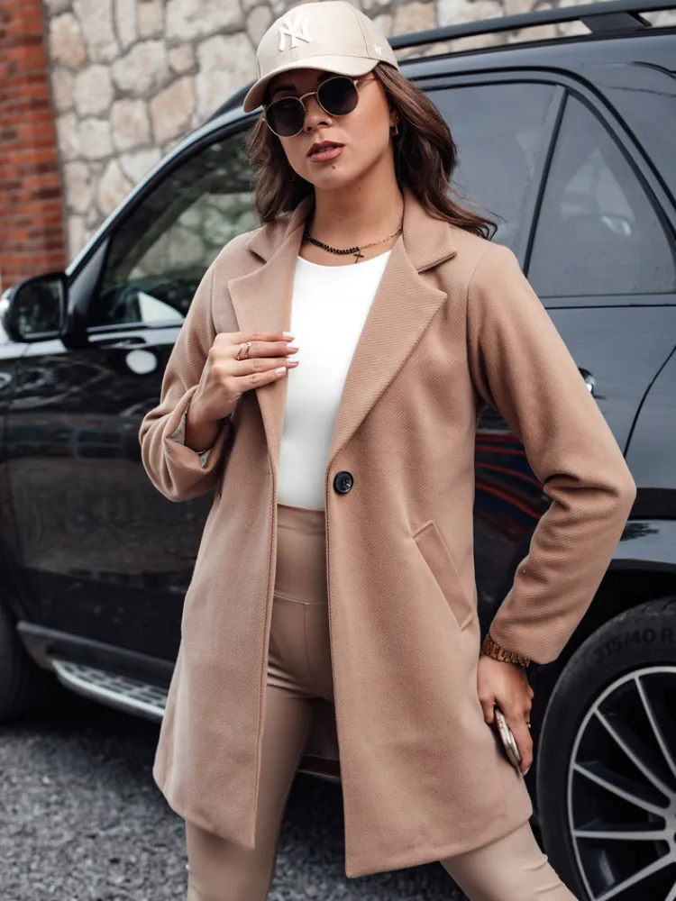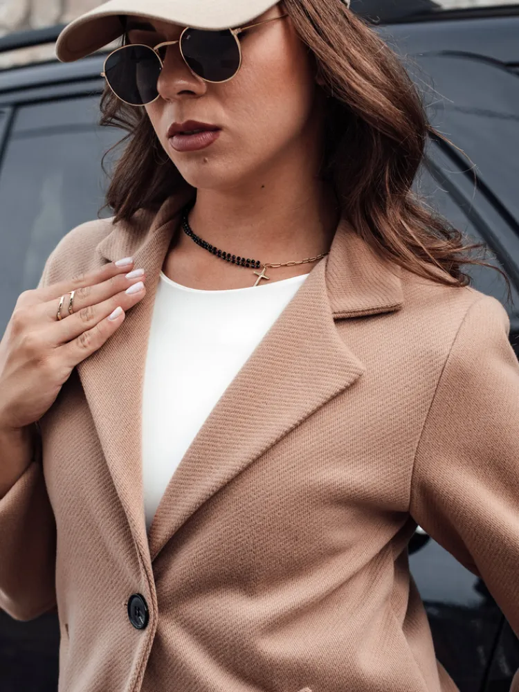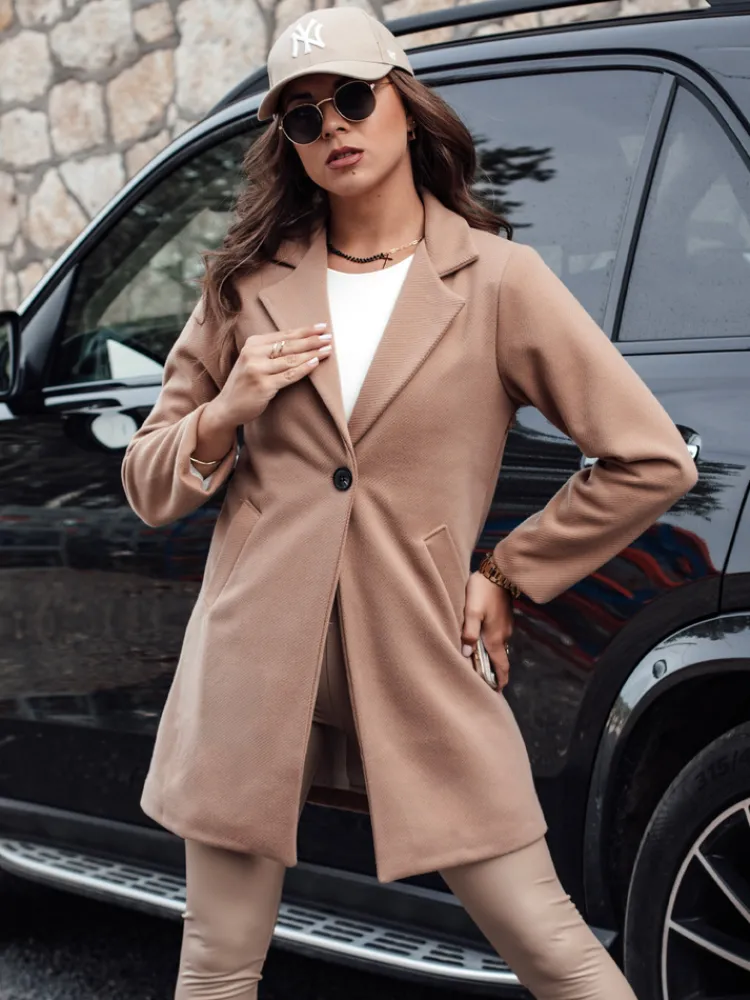 Klasyczny płaszcz LUGI zapinany na guzik. Model posiada kołnierzyk. Z przodu znajdują się dwie kieszenie. Świetnie pasuje do codziennych i wieczorowych stylizacji. Totalny klasyk na nadchodzący sezon!