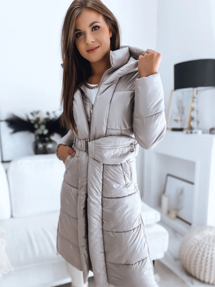 Wyjątkowy, ocieplany płaszcz wykonany z połyskującego materiału. Model posiada nieodpinany kaptur, zapięcie na zamek oraz zamki po bokach. W talii znajduje się pasek oraz ozdobna saszetka, która dodaje uroku. Jeżeli chcesz poczuć się modnie i stylowo to płaszcz LINA będzie idealny.
