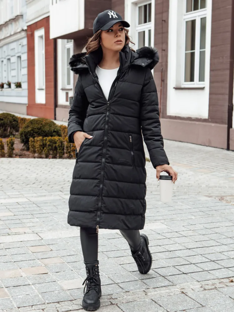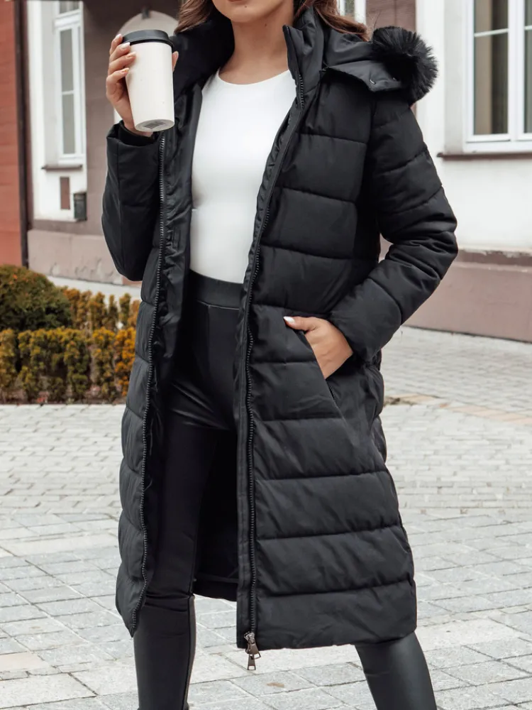 Długa, pikowana kurtka z futrzanym kapturem, idealna na chłodne dni. Jej lekka, ale ciepła konstrukcja zapewnia komfort i ochronę przed zimnem. Elegancki design z futrzanym wykończeniem dodaje jej luksusowego charakteru, a praktyczne kieszenie i regulacja w pasie sprawiają, że jest to doskonały wybór na codzienne spacery po mieście czy weekendowe wypady. Ta kurtka doskonale komponuje się z casualowymi stylizacjami, dodając im szyku i elegancji. Wybierz ją, aby połączyć styl z funkcjonalnością i zawsze wyglądać modnie.