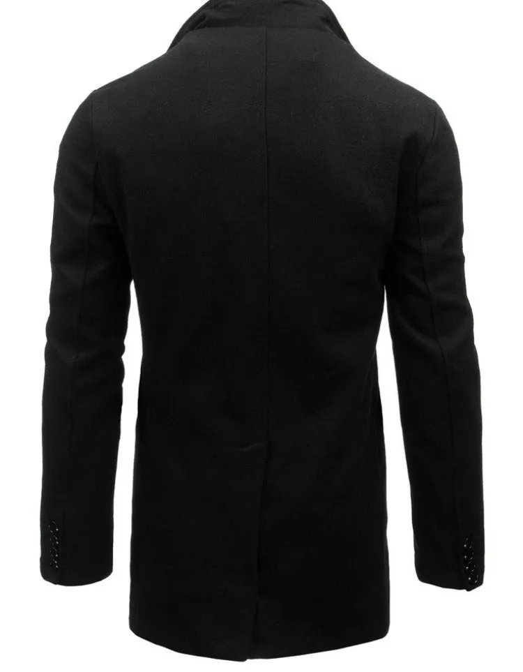Czarny płaszcz męski.Zapinany na guziki.Podszewka wewnątrz płaszcza.Trzy kieszenie zewnętrzne.Jedna kieszeń wewnę…