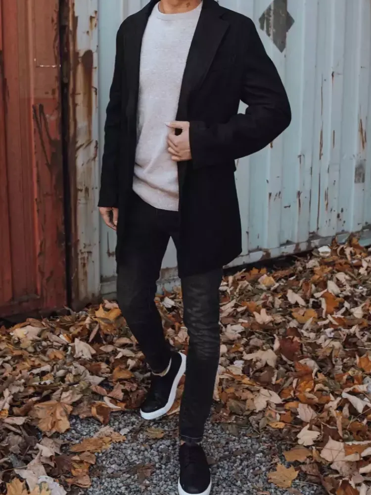 Czarny płaszcz męski.Zapinany na guziki.Podszewka wewnątrz płaszcza.Trzy kieszenie zewnętrzne.Jedna kieszeń wewnę…