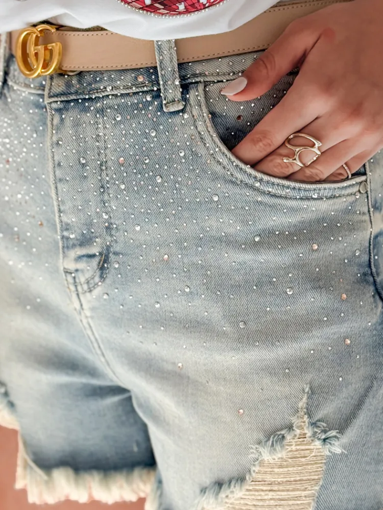 Spodenki damskie jeansowe z cyrkoniami LIKE A STAR