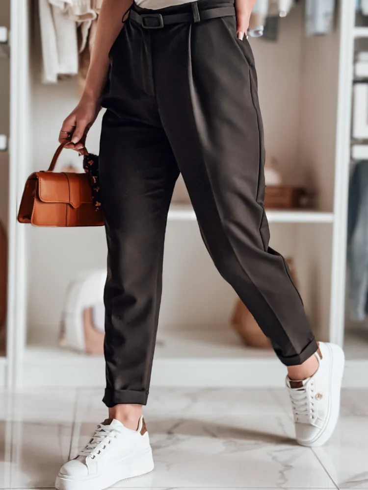 Casualowe spodnie damskie plisowane PLISSO z paskiem