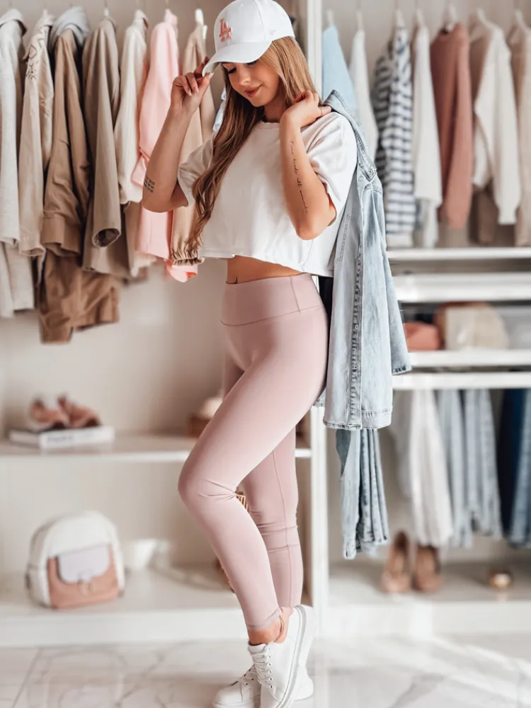 Legginsy damskie z wysokim stanem to połączenie komfortu i funkcjonalności. Elastyczny materiał zapewnia dopasowanie, podkreślając sylwetkę i dając efekt push-up. Gumka w pasie stabilizuje legginsy, gwarantując wygodę podczas codziennych aktywności. Idealne do sportowych i casualowych stylizacji.