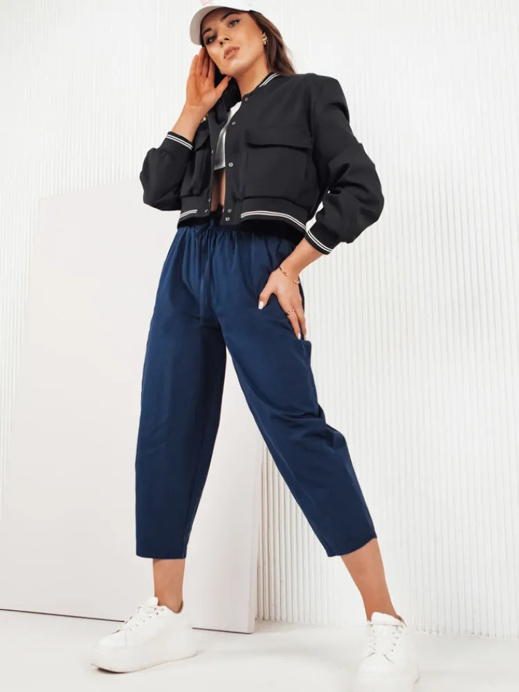 - Krój: Charakterystyczny krój balloon dodaje spodniom oryginalności i nowoczesności. Gumka i wiązanie w pasie zapewniają idealne dopasowanie do sylwetki.