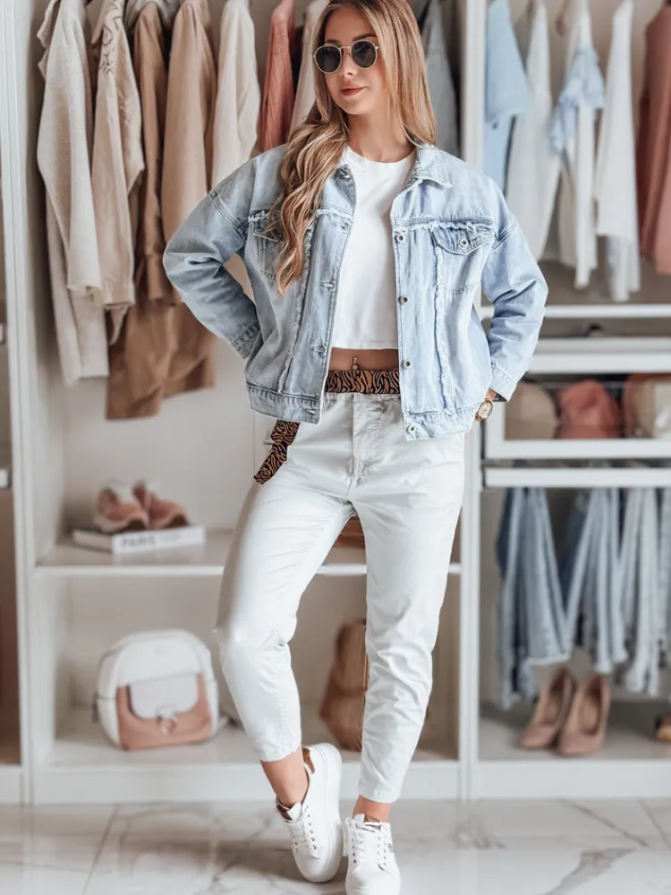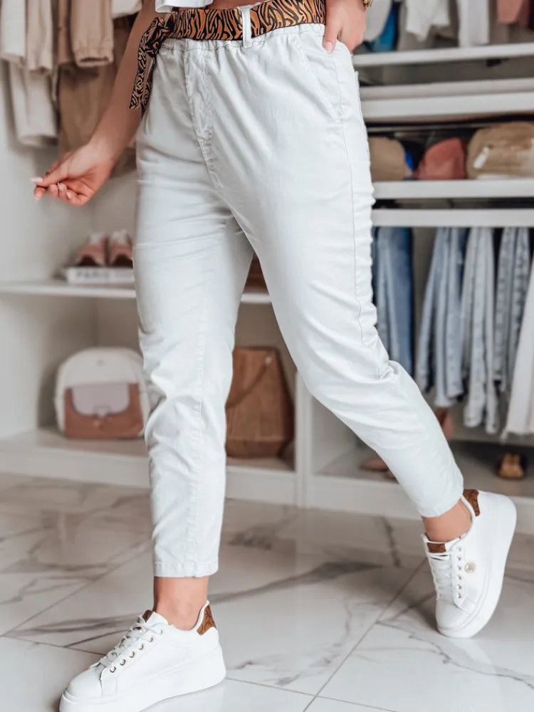 Casualowe spodnie damskie z modnym wiązanym paskiem, które łączą wygodę i styl. Nogawki o długości 7/8 nadają lekkości, a klasyczny krój z kieszeniami sprawia, że to idealny wybór na co dzień. Zapinane na zamek i guzik, doskonale komponują się zarówno z trampkami, jak i sandałkami.