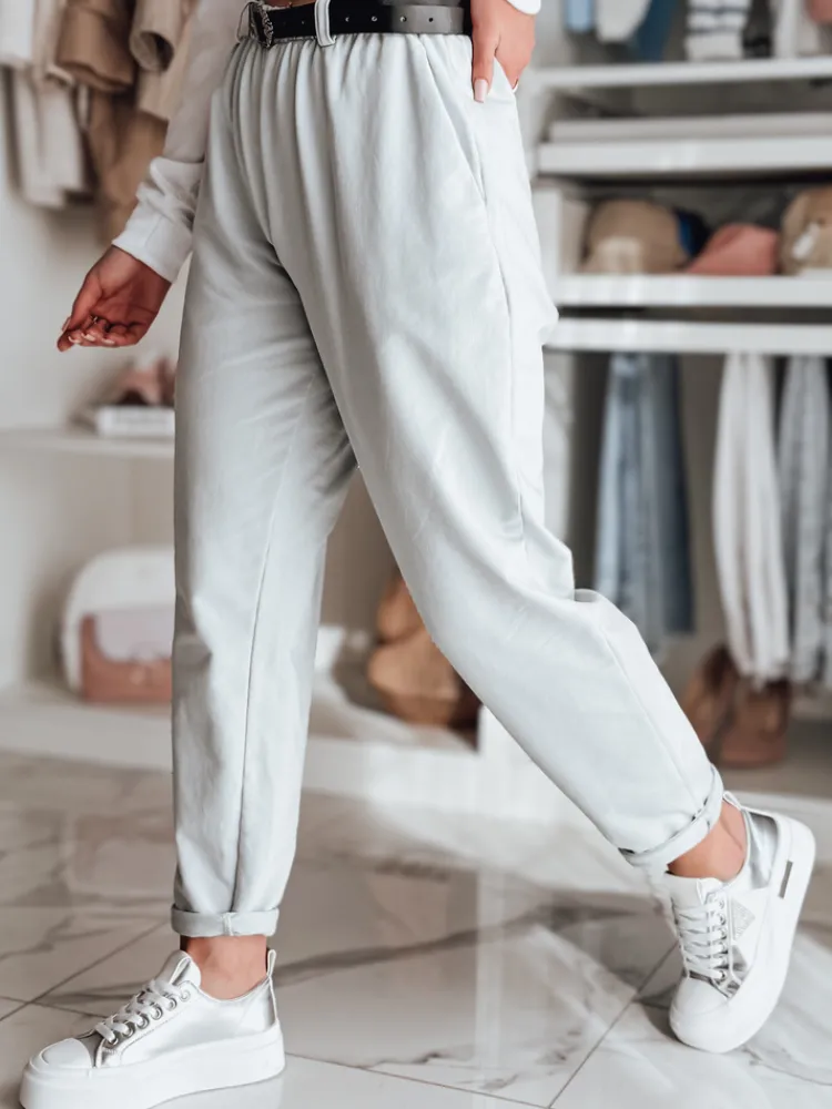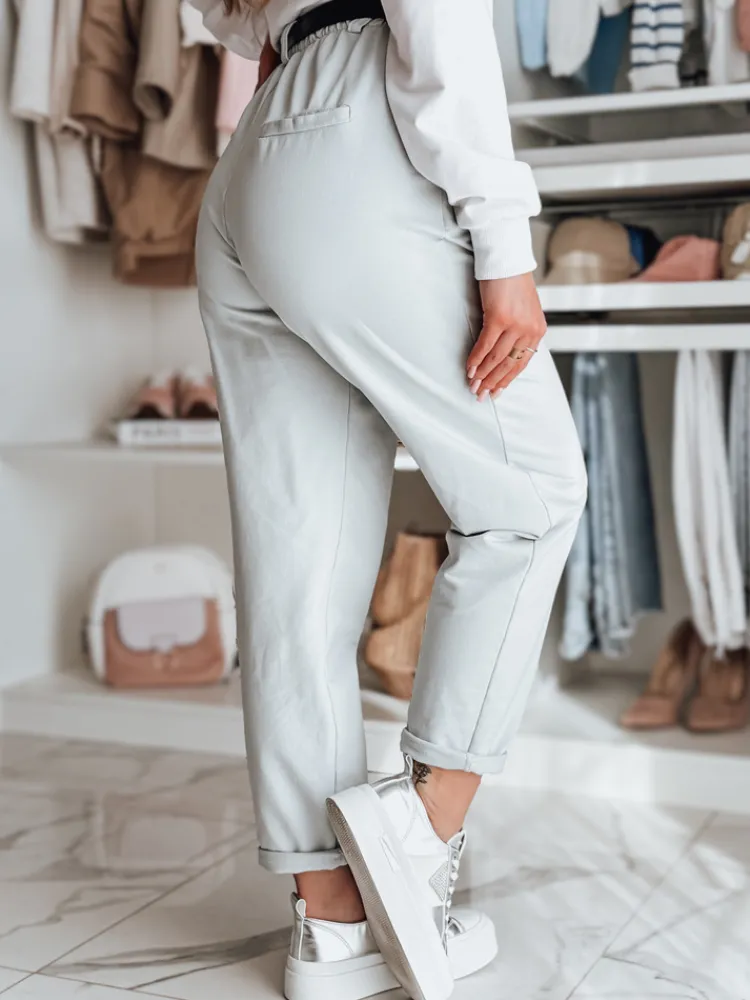 Damskie spodnie chinosy z wysokim stanem, które łączą elegancję z codziennym komfortem. Klasyczny fason subtelnie podkreśla sylwetkę, a luźniejszy krój zapewnia swobodę ruchów. W zestawie znajduje się dopasowany pasek, który pięknie podkreśla talię i nadaje całości eleganckiego wykończenia. Idealne do biura, na spotkanie czy casualowe wyjście.