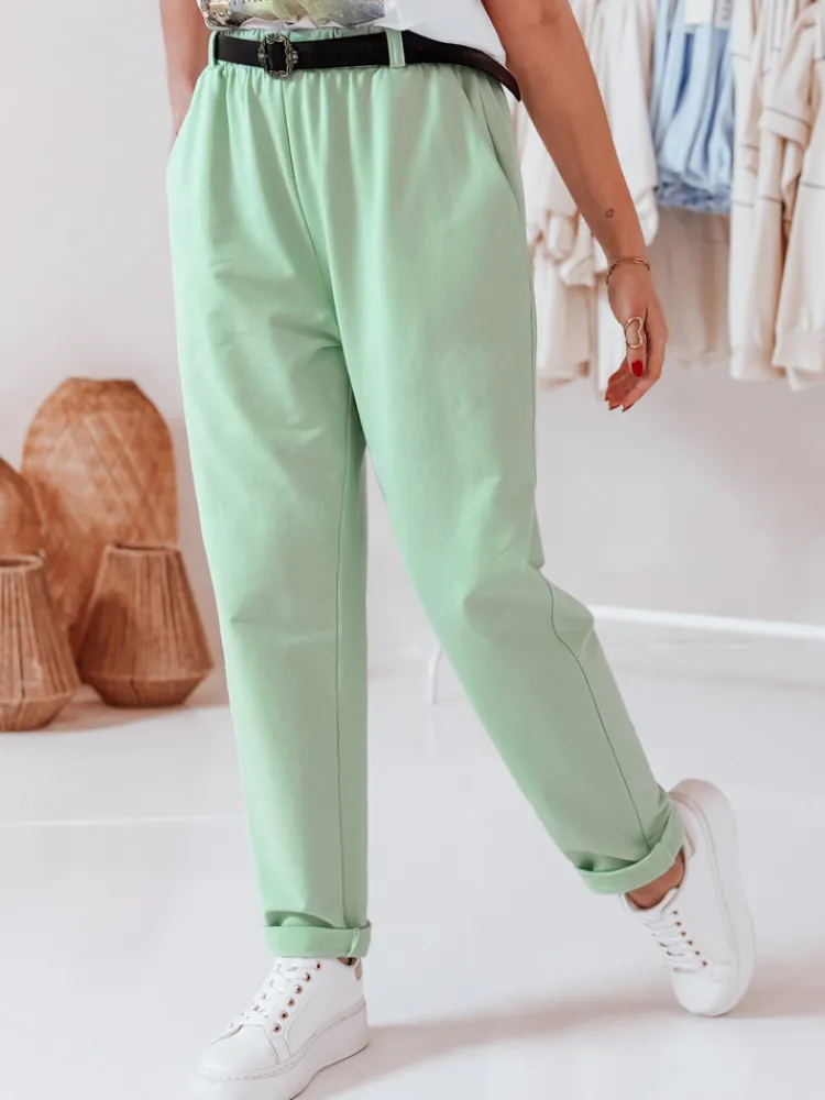 Damskie spodnie chinosy z wysokim stanem, które łączą elegancję z codziennym komfortem. Klasyczny fason subtelnie podkreśla sylwetkę, a luźniejszy krój zapewnia swobodę ruchów. W zestawie znajduje się dopasowany pasek, który pięknie podkreśla talię i nadaje całości eleganckiego wykończenia. Idealne do biura, na spotkanie czy casualowe wyjście.