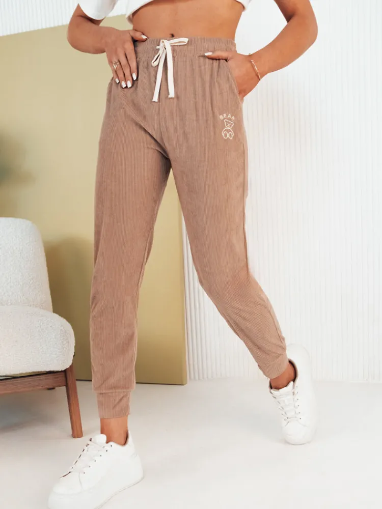 Wybierz spodnie, które łączą w sobie klasykę i nowoczesne elementy. Sztruksowy materiał to gwarancja trwałości, a wysoki stan elegancko podkreśla talię. Z małym detalem w postaci haftu i regulowanymi ściągaczami. Spodnie BEAR to idealny towarzysz na casualowe wyjścia, jak i relaks w domowym zaciszu.