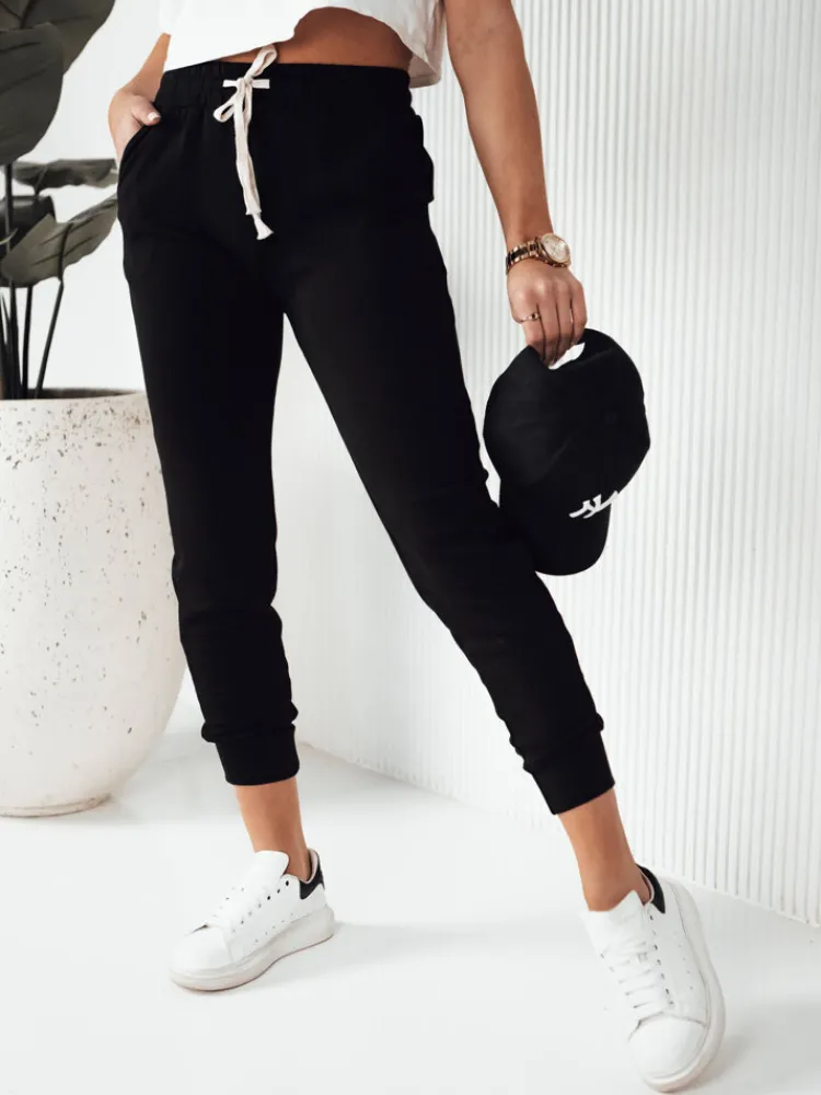 Wykonane z wysokiej jakości, miłego w dotyku materiału spodnie dresowe to idealna propozycja, z którą stworzysz wiele stylizacji niezależnie od pory. Posiadają dwie kieszenie oraz ściągacz przy nogawkach. Dzięki gumce oraz wiązaniu w talii idealnie dopasowują się do sylwetki. Model dostępny w trzech kolorach.