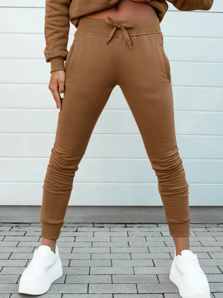 Spodnie dresowe to element garderoby, który zagościć musi w każdej szafie. Absolutnie uniwersalny model, który wykorzystasz do codziennych i sportowych stylizacji. W pasie regulowane ściągaczem i sznurkiem. Nogawki wykończone ściągaczem dzięki czemu prezentują się zgrabnie i stylowo. Polecamy.
