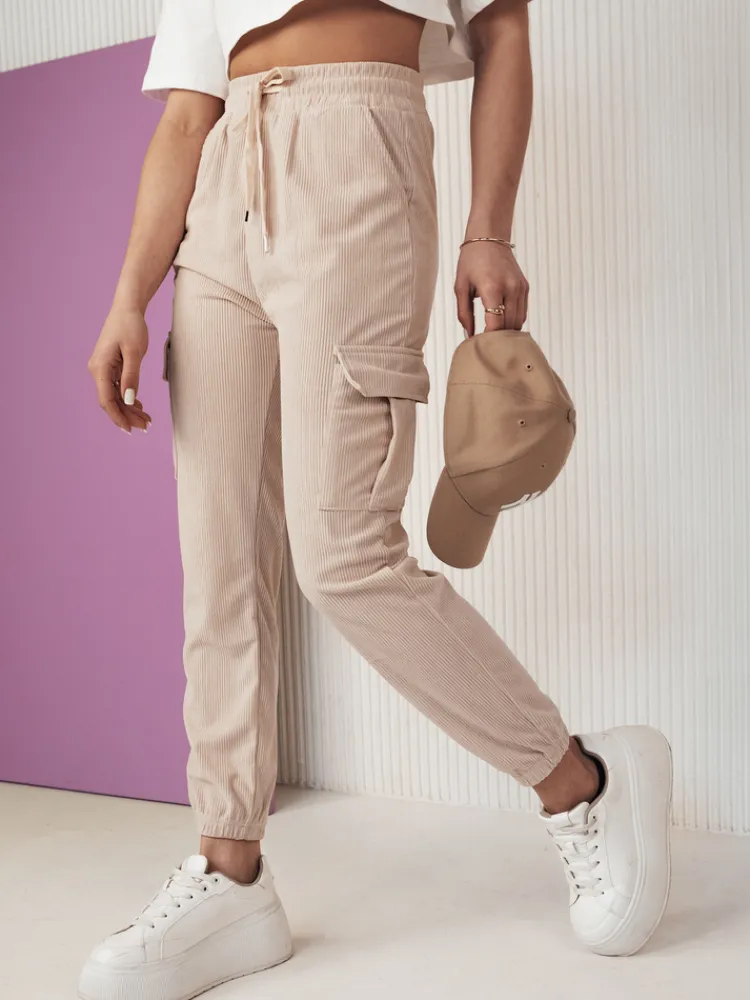 Spodnie dresowe FLAYON to kwintesencja komfortu i stylu. Ich sztruksowy materiał zapewnia ciepło i miękkość, a kieszenie cargo są praktycznym dodatkiem, który podkreśla ich miejski charakter. Ściągacze w pasie i nogawkach gwarantują doskonałe dopasowanie, czyniąc je niezbędnym elementem w każdej casualowej garderobie.