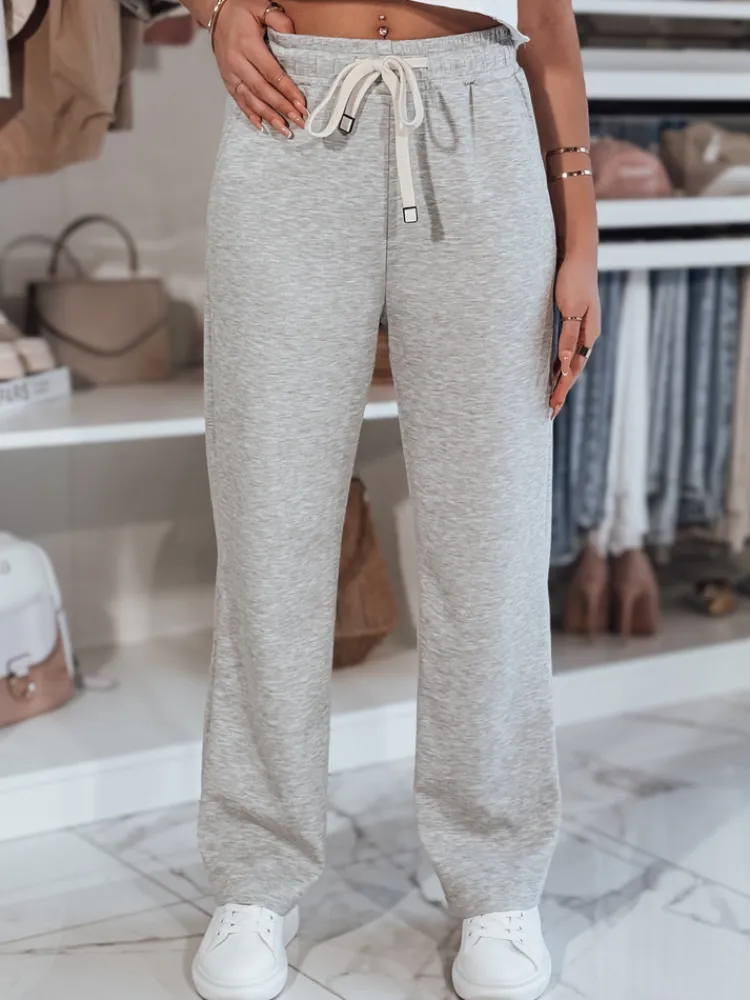 Spodnie dresowe z krojem wide leg i elastycznym pasem, który zapewnia wygodę na co dzień. Regulacja sznurkiem oraz ściągacz pozwalają dopasować obwód, a ozdobne kieszenie dodają uroku. Uniwersalny fason sprawdzi się zarówno na co dzień, jak i w casualowych stylizacjach. Wykonane z przyjemnego materiału, gwarantują komfort noszenia przez cały dzień.