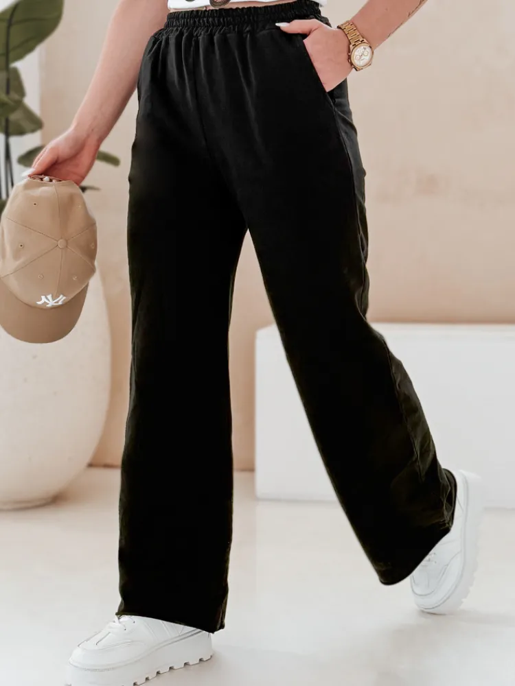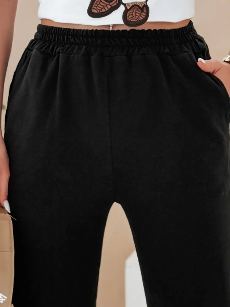 Luźne spodnie dresowe z szerokimi nogawkami to must-have dla kobiet ceniących wygodę i styl. Wysoki stan wydłuża optycznie nogi. Wygodna gumka w pasie doskonale dopasowuje się do sylwetki, zapewniając komfort przez cały dzień. Uniwersalny rozmiar pasuje od XS do L. Dzięki lekkiej tkaninie spodnie są idealne na cieplejsze dni oraz spacery. Kieszenie z przodu to dodatkowy atut, który łączy modę z urokiem. Idealny wybór na spacery oraz relaks w domu.